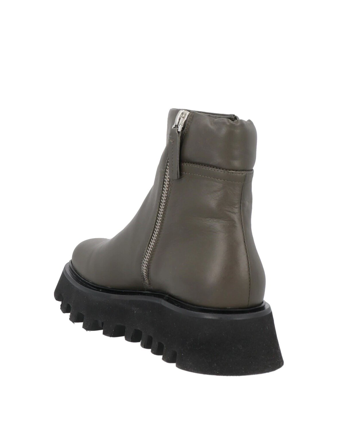 Кожа, без аппликаций, одноцветное изделие, кожаная подкладка, застежка-молния, скругленный носок, квадратный каблук, резиновая подошва с тиснением, содержит нетекстильные части животного происхождения, массивные ботинки