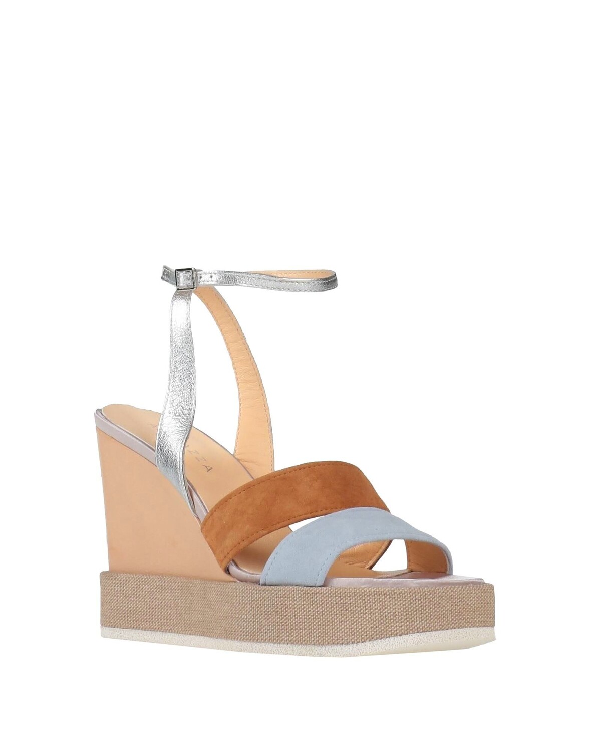 Кожа, эффект замши, эффект ламинирования, без аппликаций, разноцветное, подкладка из кожи, ремешок с пряжкой, квадратный носок, каблук-танкетка, резиновая подошва с тиснением, содержит нетекстильные части животного происхождения, босоножки с ремешком на щиколотке