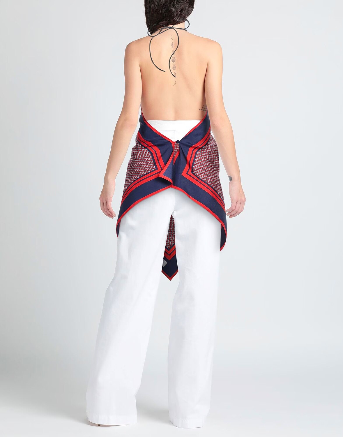 Сатин, логотип бренда, принт-логотип, воротник-халтер, без рукавов, завязка, без карманов, асимметричный низ, химчистка, нельзя отбеливать, нельзя сушить в стиральной машине, верх