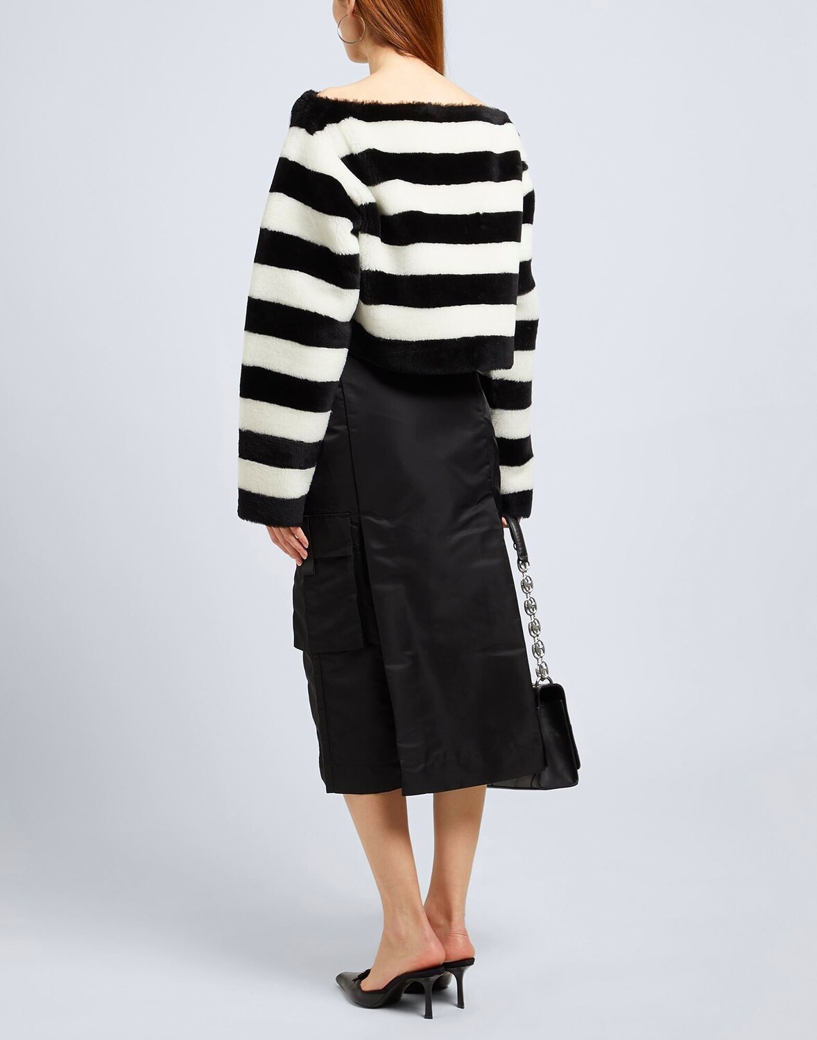 Кожа, без аппликаций, в полоску, овальный вырез, длинные рукава, кожаная подкладка, без карманов, содержит нетекстильные части животного происхождения, специальная чистка или химчистка, нельзя сушить в стиральной машине, не отбеливать, не гладить, верх