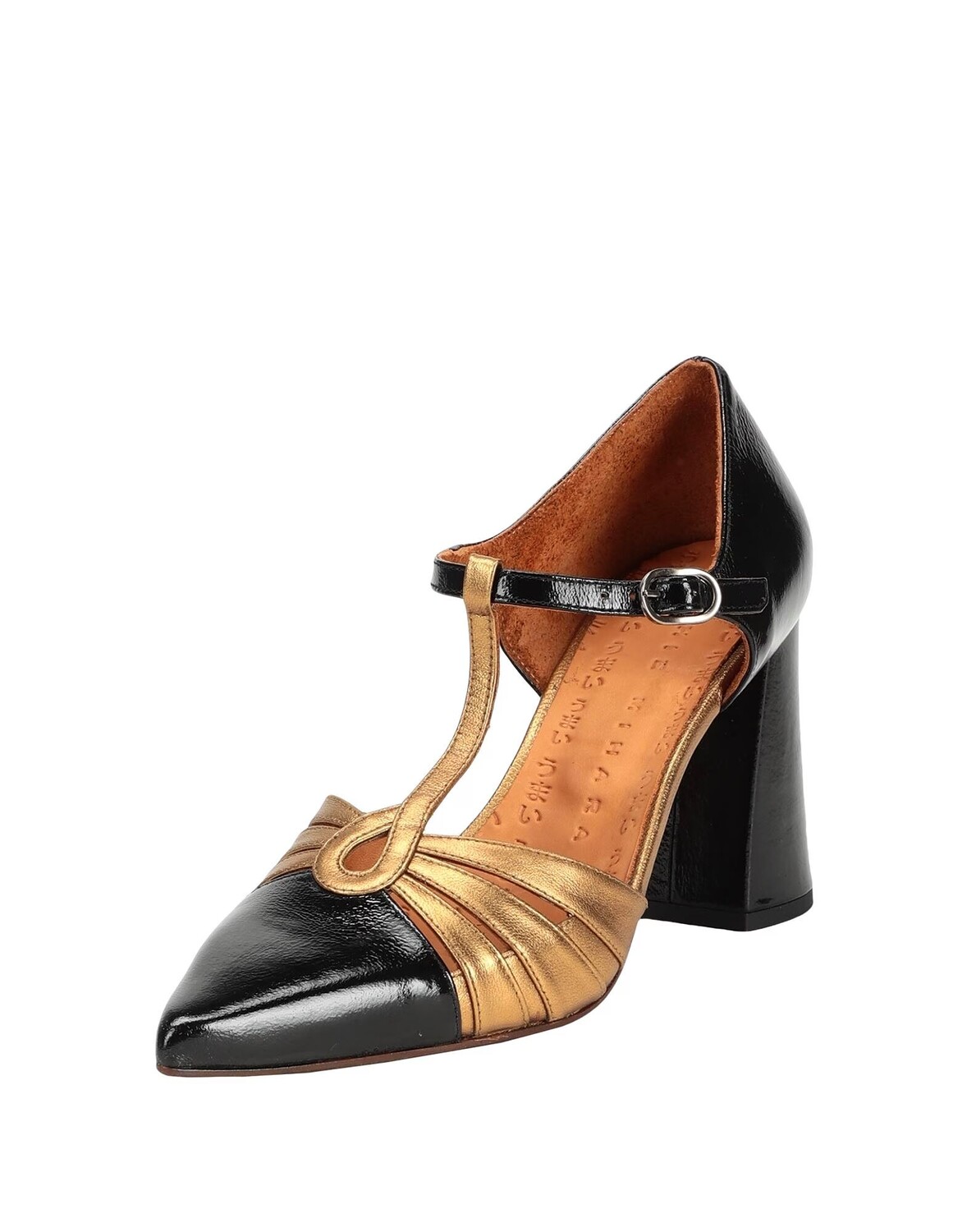 Лакированная кожа, кожа, металлик, без аппликаций, двухцветный, подкладка кожа, застежка на пряжке, острый носок, квадратный каблук, кожано-резиновая подошва, содержит нетекстильные части животного происхождения, Т-образная планка