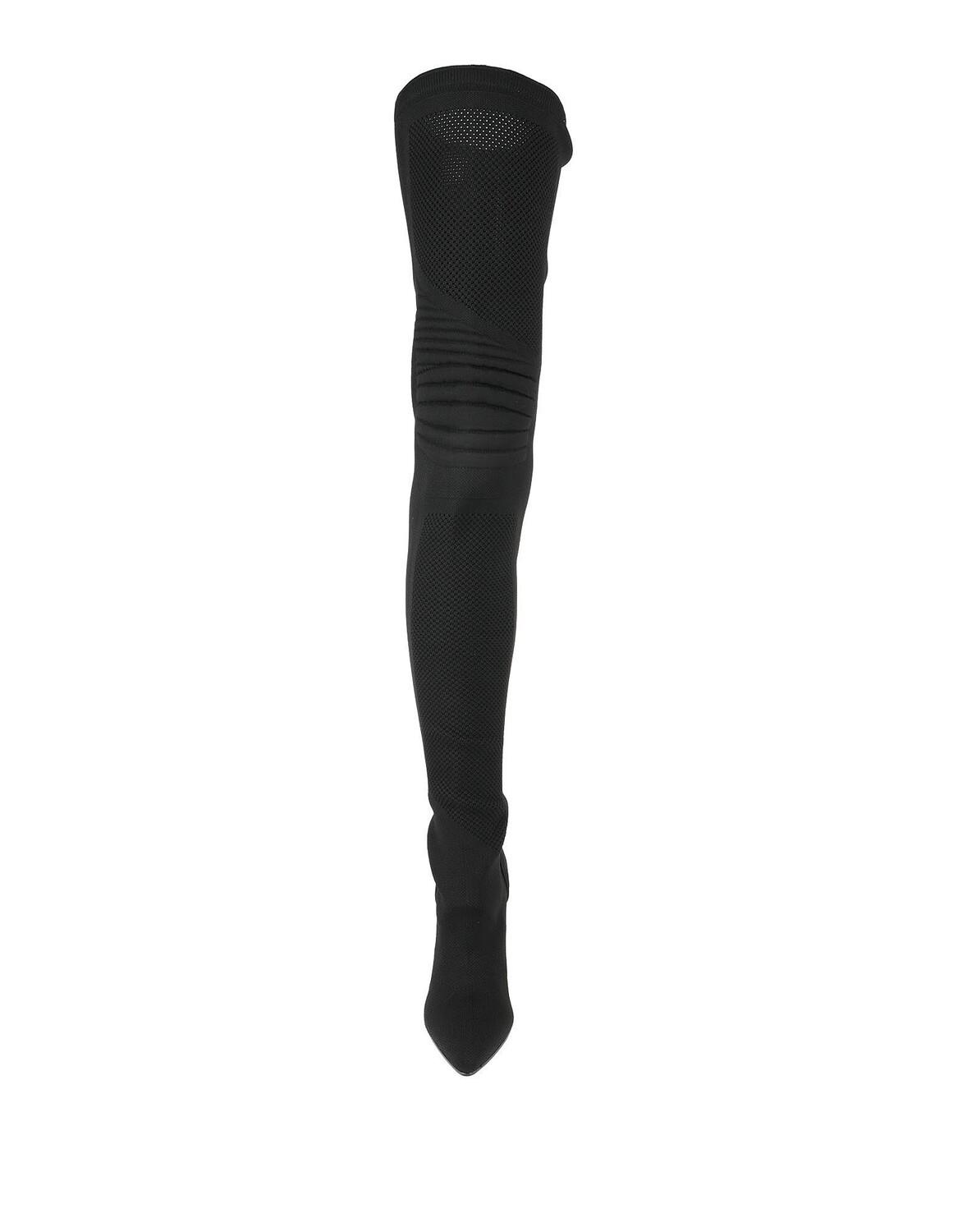 Техническая ткань, без аппликаций, одноцветное изделие, внутренняя поверхность из ткани, узкий носок, скульптурный каблук, кожаная подошва, модель ботфортов