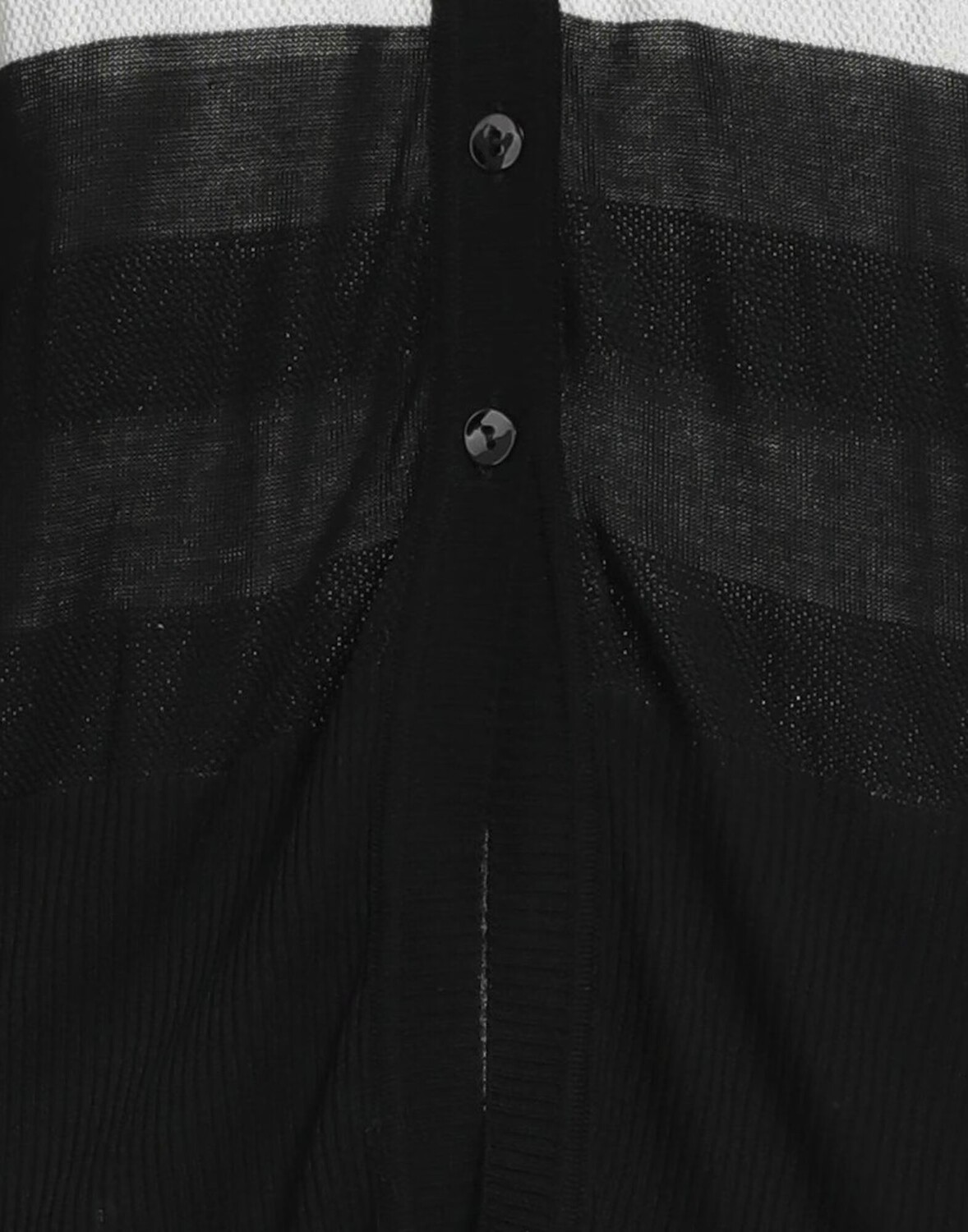 Трикотаж, легкая вязка, без аппликаций, двухцветное, V-образный вырез, длинные рукава, ребристые манжеты, пуговицы, без карманов