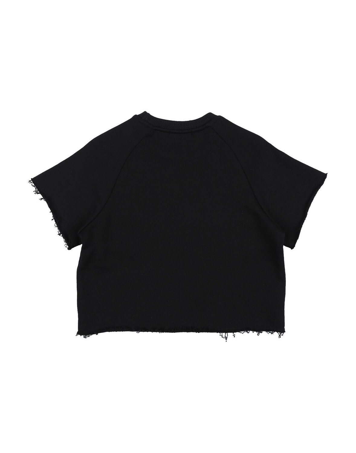 Френч терри, логотип бренда, кристаллы, одноцветное изделие с аппликациями, круглый вырез, короткие рукава, без карманов, необработанный низ, машинная стирка, нельзя отбеливать, нельзя сушить в стиральной машине