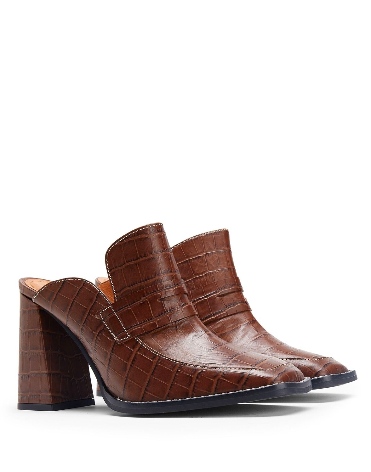 Кожа, крокодиловый принт, без аппликаций, одноцветное изделие, квадратный носок, квадратный каблук, обтянутый каблук, внутри кожа, резиновая подошва, содержит нетекстильные части животного происхождения