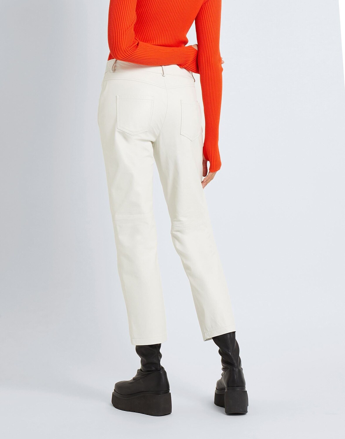 Эти простые кожаные брюки итальянского производства имеют завышенную талию и прямые брюки. Они имеют шлевки для ремня на талии, пять карманов и застежку на молнию и пуговицы. Модель одета в итальянский размер S/40. Этот предмет одежды содержит цифровой идентификатор, что означает, что вы можете открыть для себя целый мир эксклюзивного контента о своем изделии; отсканируйте QR-код на этикетке по уходу за товаром.
