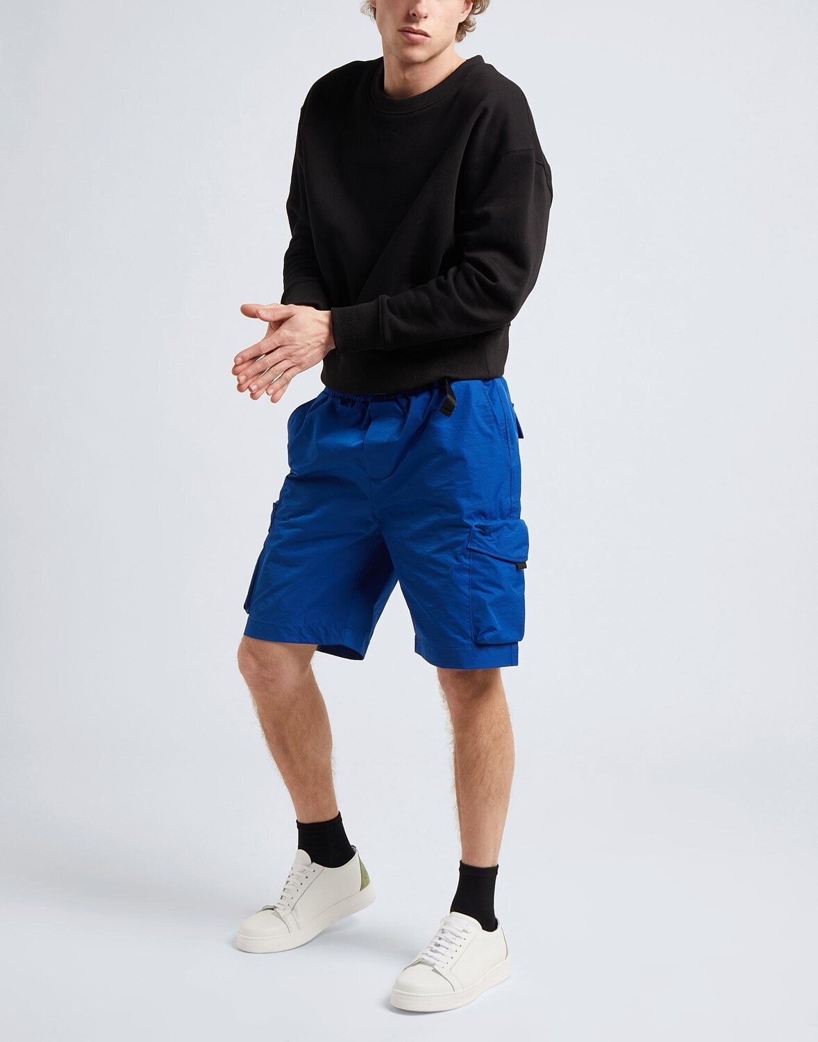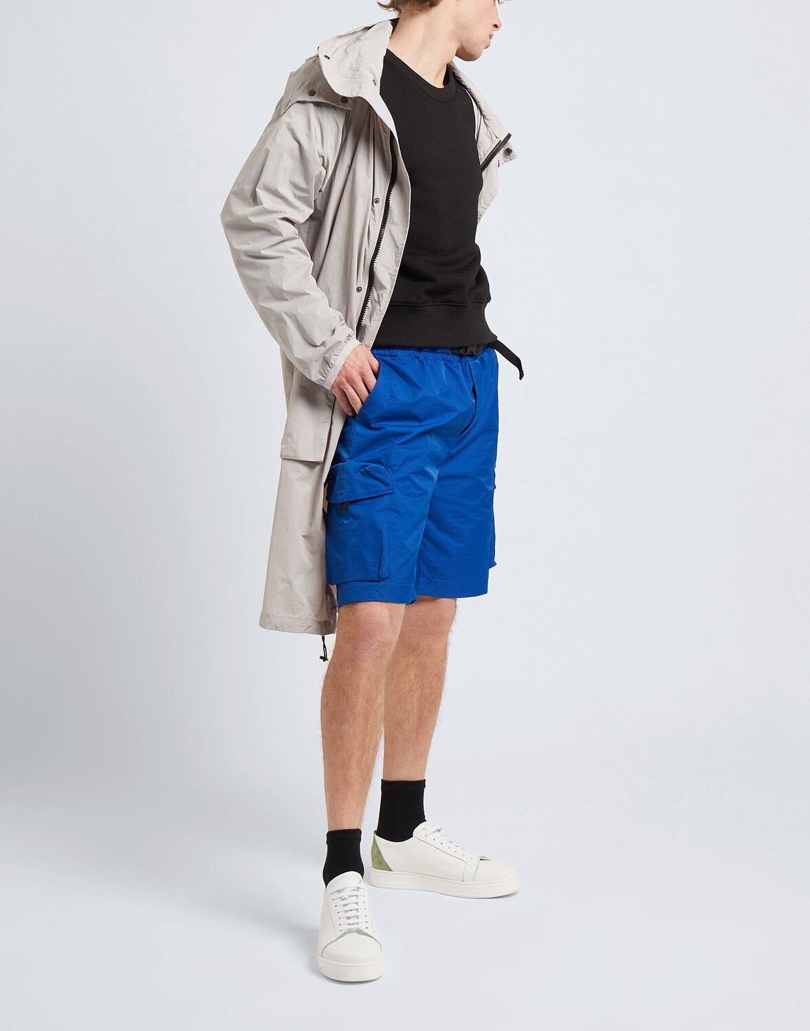 Эти шорты-бермуды — легкая и свежая одежда, идеально подходящая для долгих летних дней. Они выполнены из однотонной технической ткани, имеют ремень с автоматической пряжкой, два набедренных кармана и два набедренных кармана по бокам. На модели итальянский размер М/48.