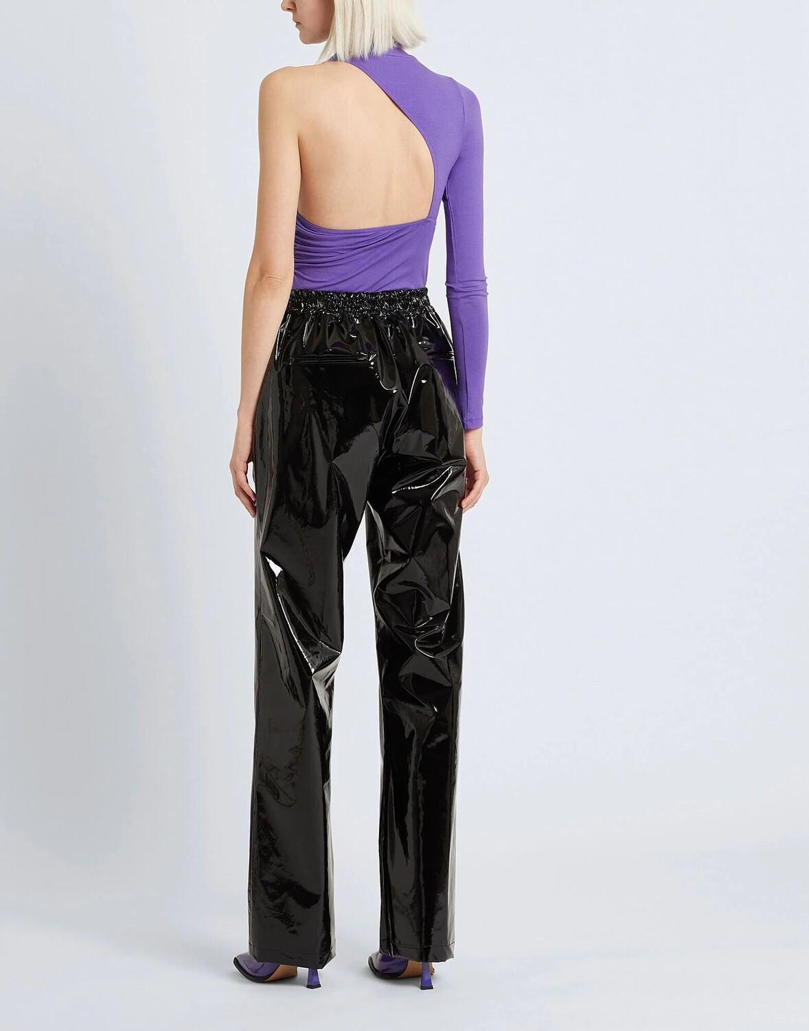 Уникальное боди с открытым плечом из однотонного эластичного трикотажа. Идеальная для весеннего сезона модель дополнена высоким воротником и застегивается на кнопки. На модели итальянский размер S/40. Этот предмет одежды содержит цифровой идентификатор, что означает, что вы можете открыть для себя целый мир эксклюзивного контента о своем изделии; отсканируйте QR-код на этикетке по уходу за товаром.