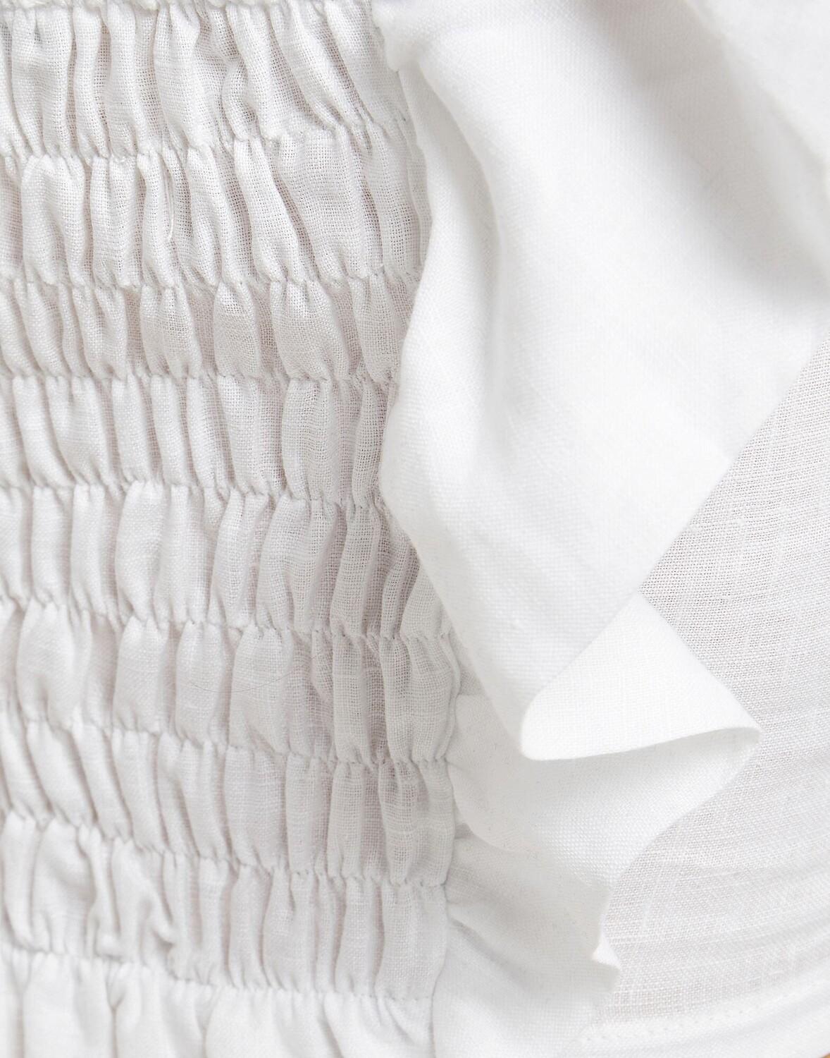 Этот однотонный льняной топ итальянского производства имеет квадратный вырез и укороченный крой. Модель без подкладки украшена оборками в тон вокруг пройм. Доступно больше цветов. Рост модели 178 см (5 футов 10 дюймов), на ней итальянский размер S-40.
