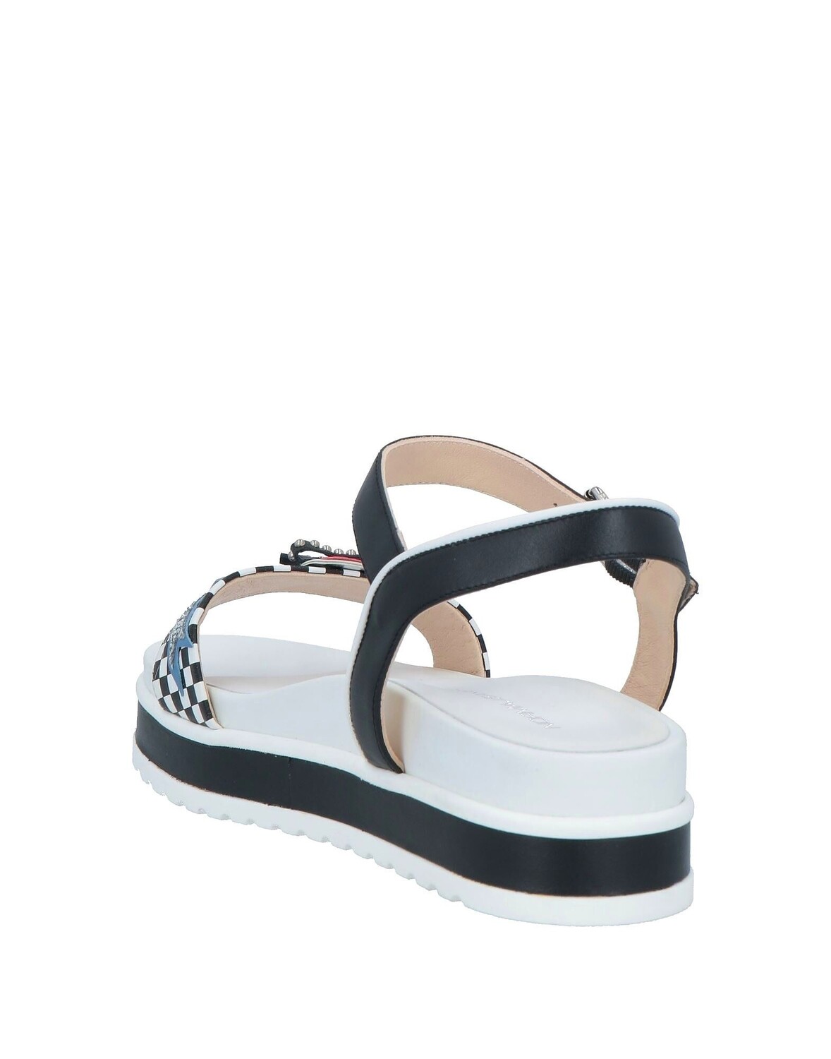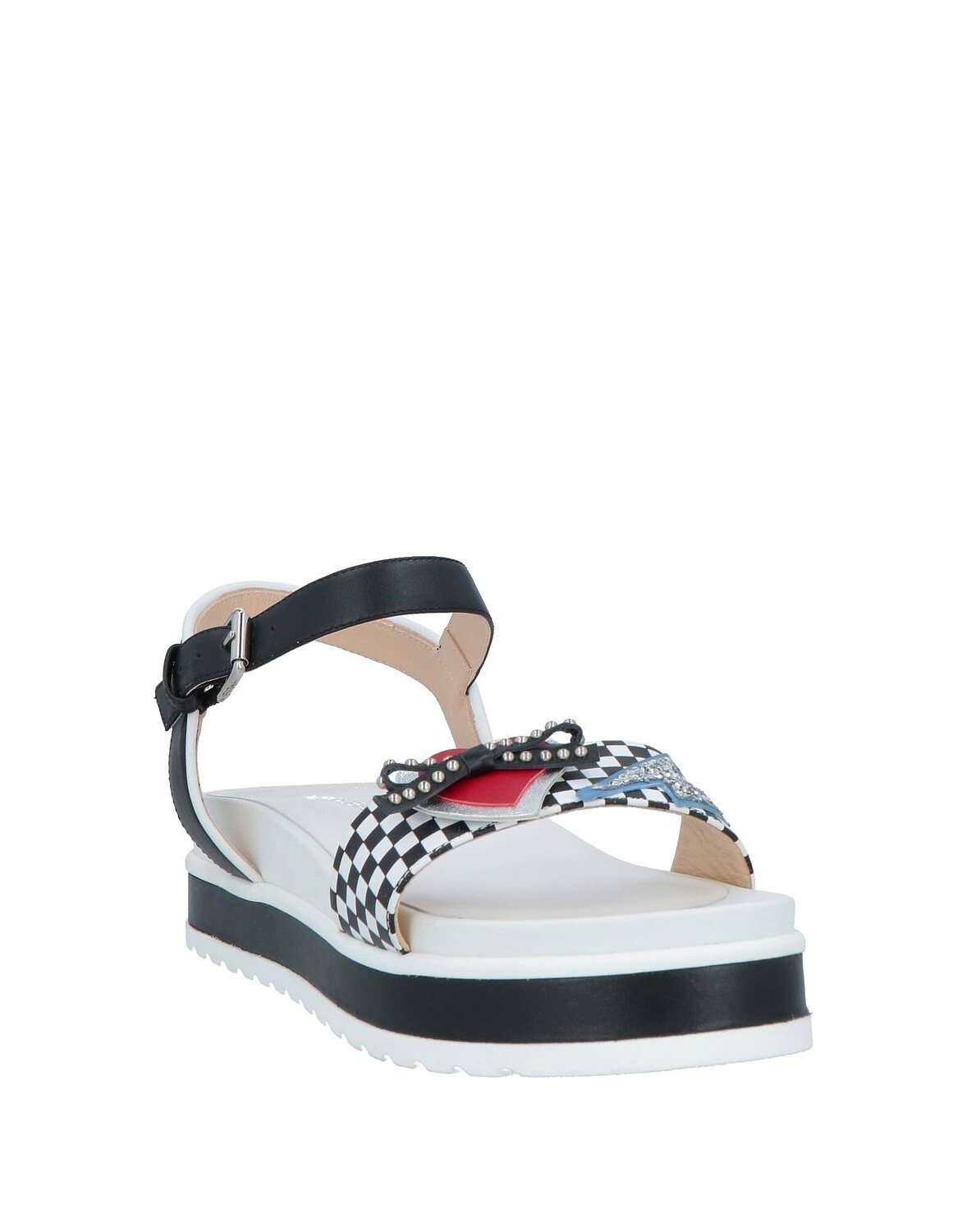 Логотип бренда, контрастные аппликации, клетка, подкладка из кожи, застежка на пряжке, круглый носок, танкетка, резиновая подошва с тиснением, содержит нетекстильные части животного происхождения, босоножки с ремешком на щиколотке