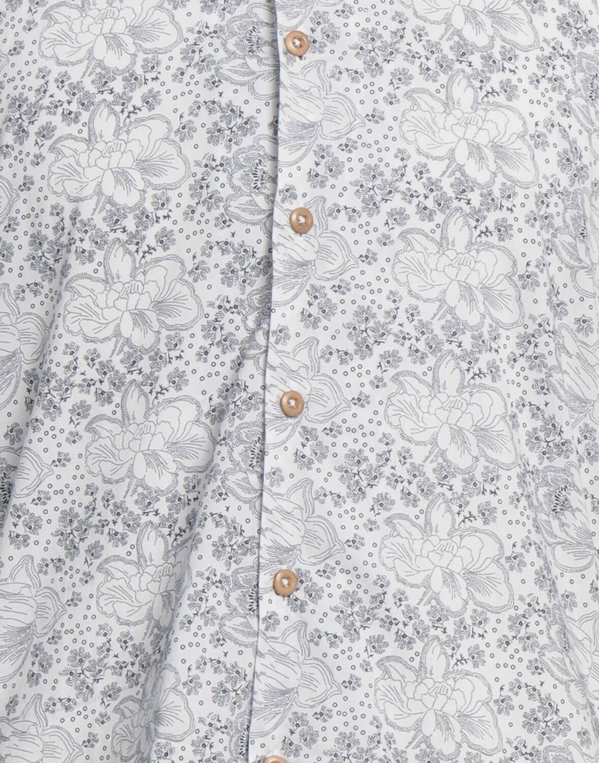 Полотняное плетение, без аппликаций, двухцветное, цветочный дизайн, классический вырез горловины, короткие рукава, пуговицы, без карманов