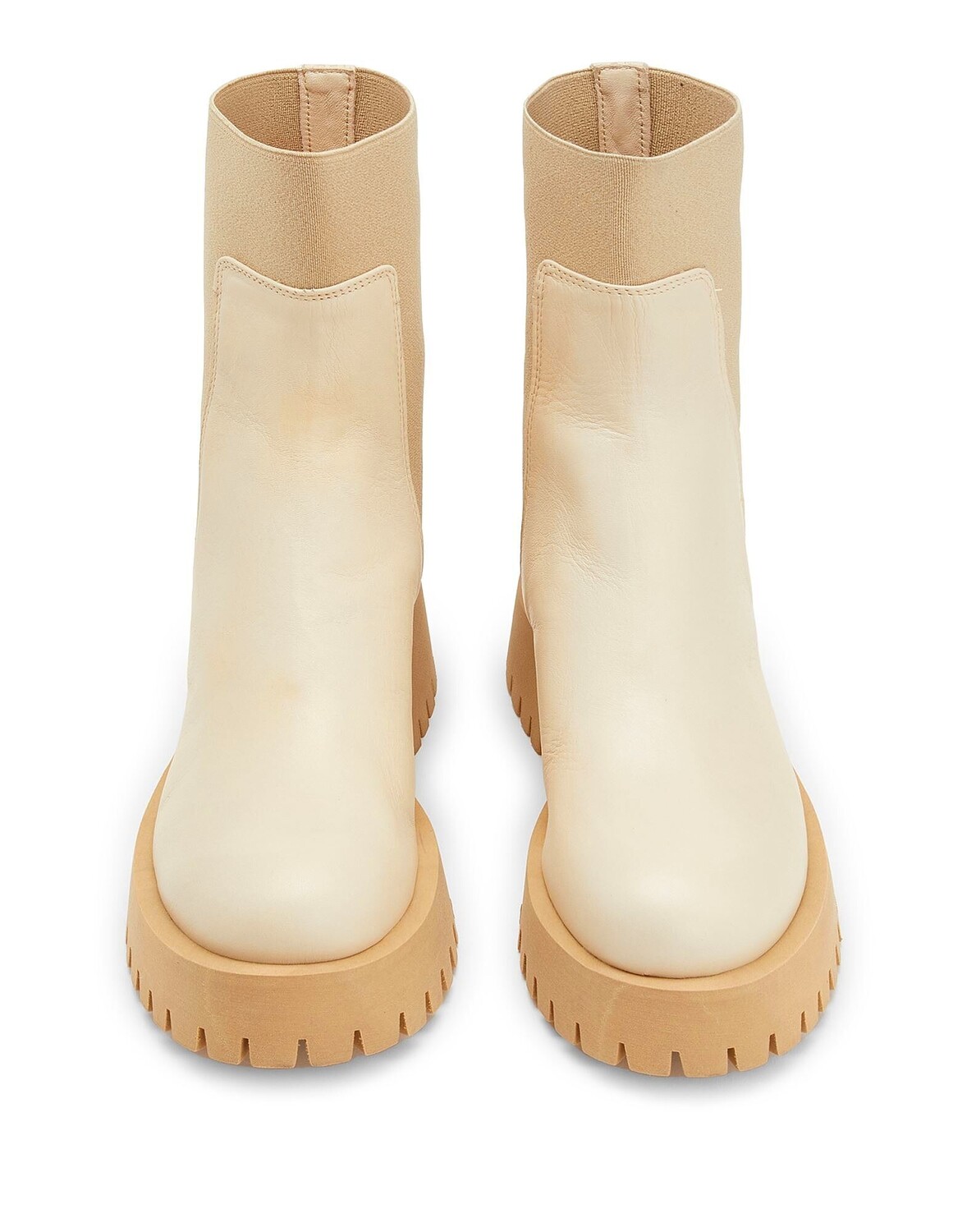 Кожа, без аппликаций, одноцветное изделие, подкладка из кожи, эластичные канавки, скругленный носок, квадратный каблук, подошва с выступами, содержит нетекстильные части животного происхождения, массивные ботинки