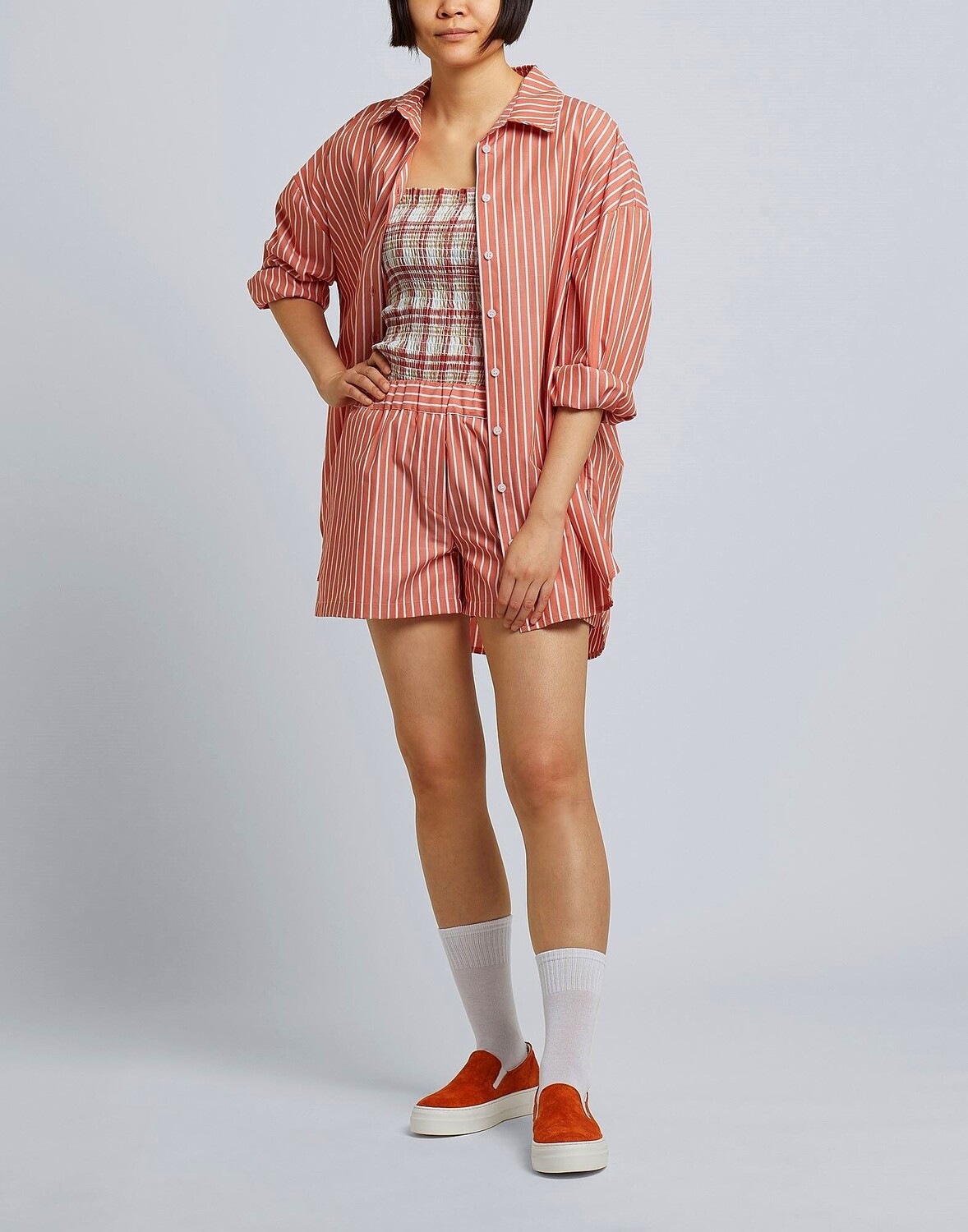Эта рубашка Made in Italy, выполненная из чистого хлопка, имеет свободный силуэт и длинные рукава. Модель дополнена полосками, классическим воротником, планкой на пуговицах спереди и манжетами на пуговицах. На модели итальянский размер S/40. Этот предмет одежды содержит цифровой идентификатор, что означает, что вы можете открыть для себя целый мир эксклюзивного контента о своем изделии; отсканируйте QR-код на этикетке по уходу за товаром.