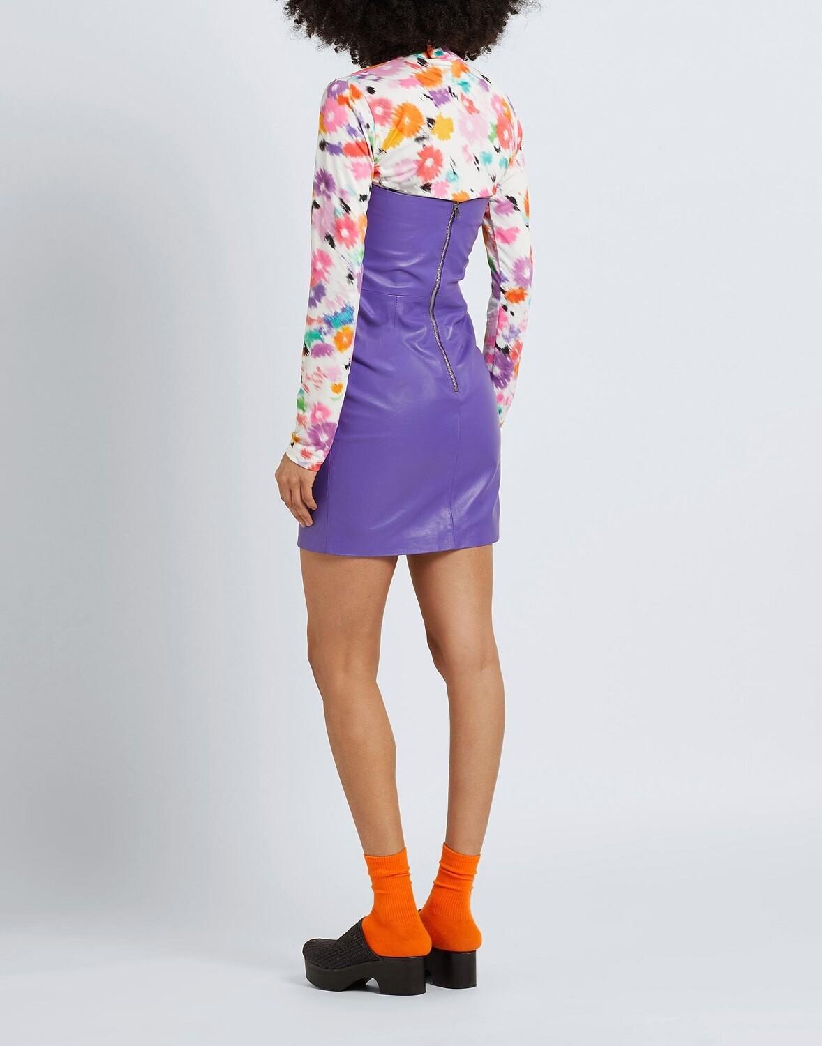 Мини-платье без рукавов, полностью выполненное из кожи, с широким вырезом, оставляющим открытыми плечи. Сделано в Италии, имеет приталенный крой, дополнено внутренней подкладкой и застежкой-молнией сзади. Модель одета в итальянский размер S/40. Этот предмет одежды содержит цифровой идентификатор, что означает, что вы можете открыть для себя целый мир эксклюзивного контента о своем изделии; отсканируйте QR-код на этикетке по уходу за товаром.
