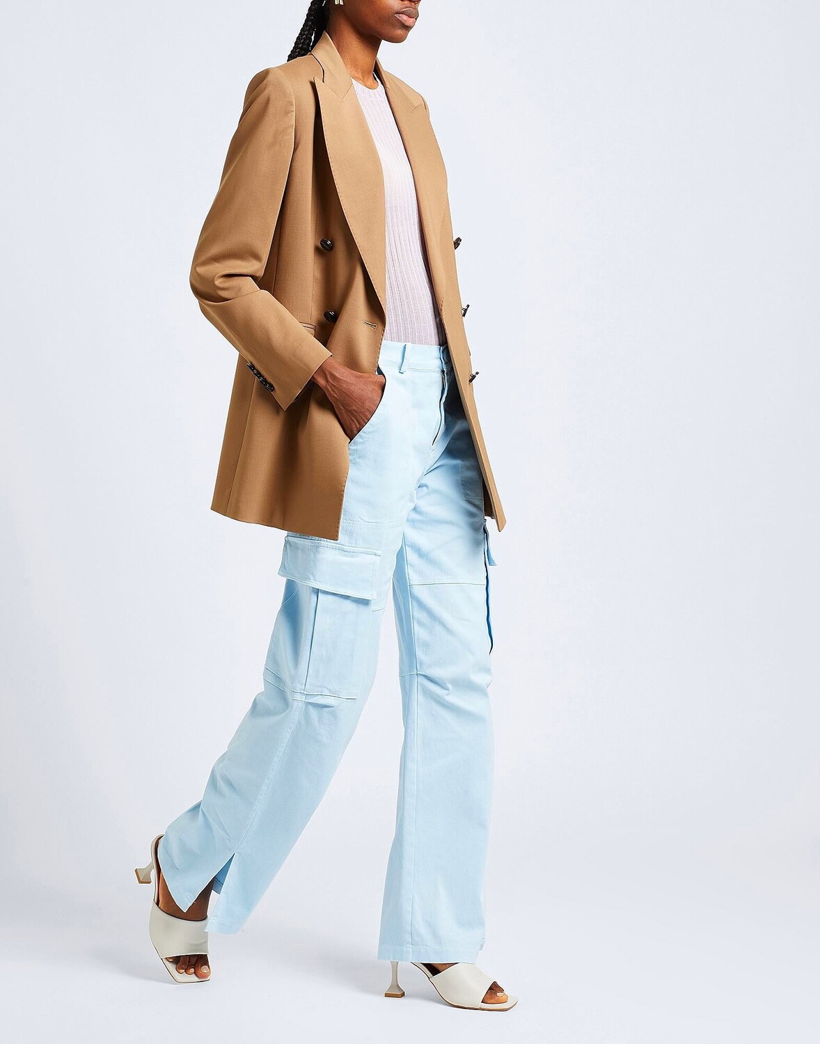 Необычайно универсальные брюки-карго с завышенной талией, прямыми штанинами и разрезами по низу. Сделано в Италии в однотонном цвете, модель включает в себя набедренные карманы, боковые накладные карманы, петли для ремня и застежку на молнию и пуговицу. На модели итальянский размер S/40.
