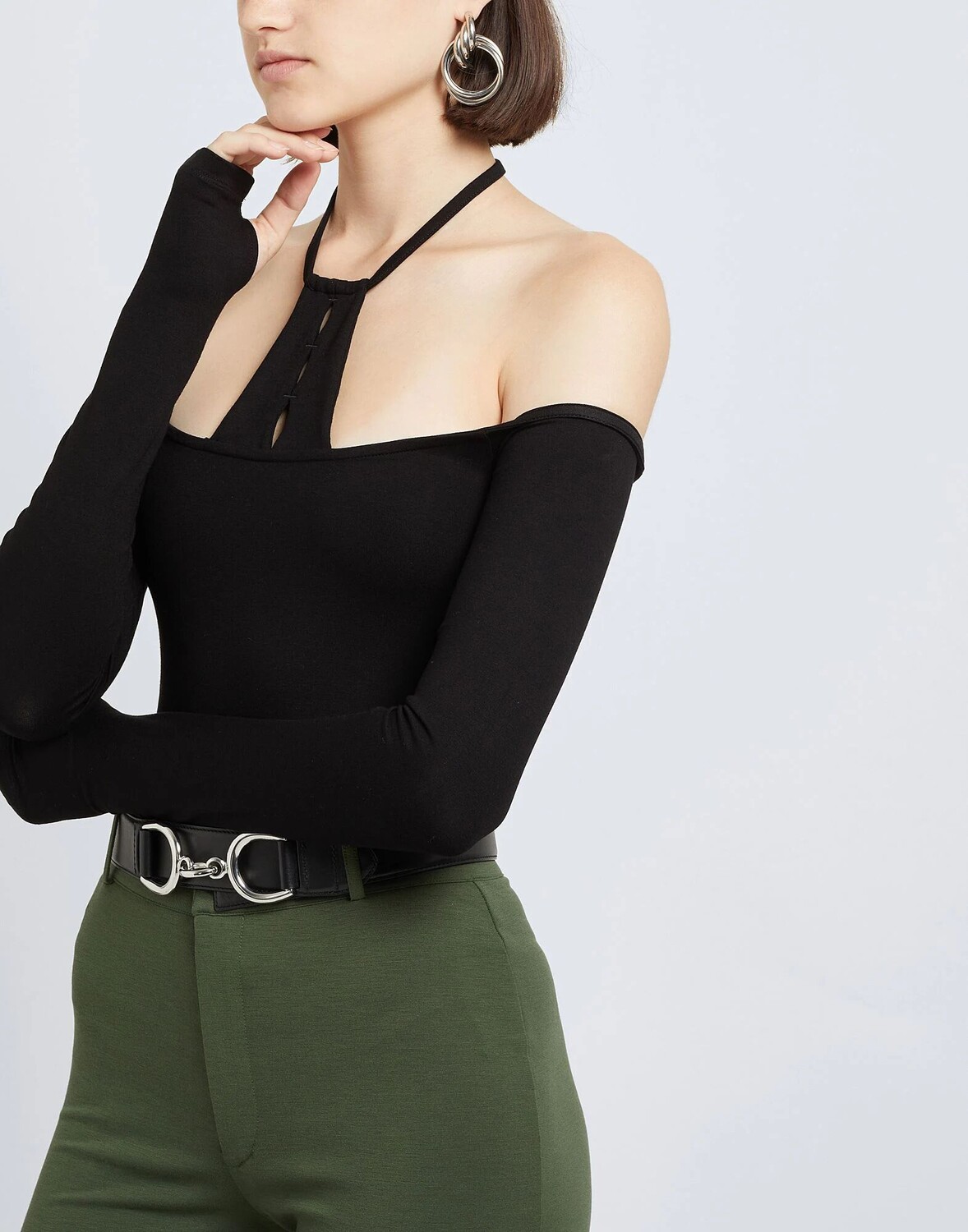 Трикотаж, без аппликаций, одноцветное изделие, с открытыми плечами, длинные рукава, кнопки, стрейч