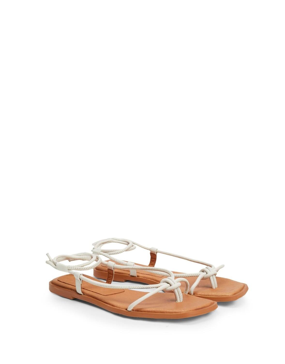 Квадратный носок и плоский дизайн определяют эти шлепанцы, которые выделяются характерной тканой отделкой. Они оснащены резиновой подошвой и шнурками в тон, которые можно завязать на щиколотке. Доступно больше цветов.