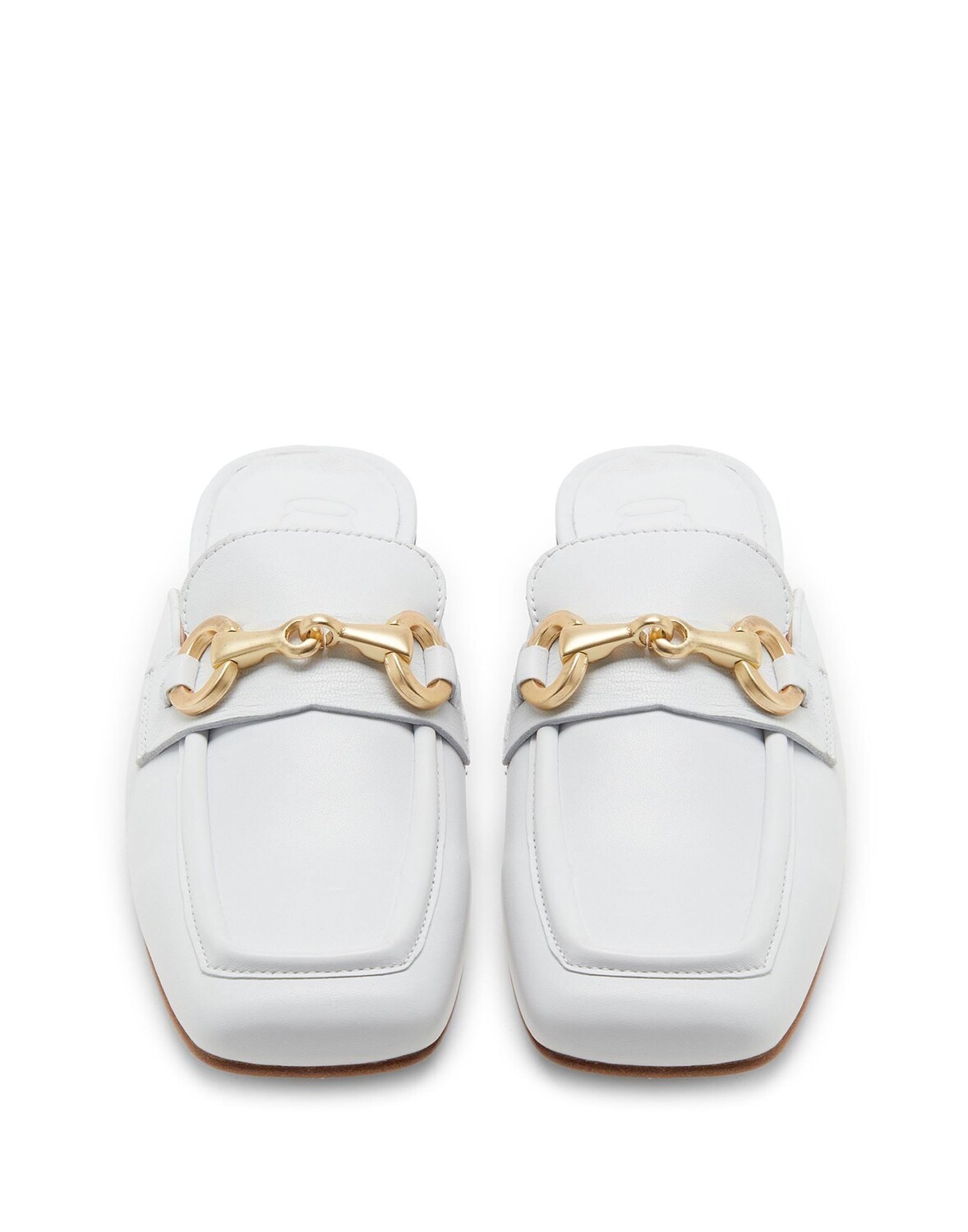 Эти мюли сделаны в Италии из однотонной кожи. Они украшены металлической деталью спереди, кожаной подошвой и квадратным носком. РАЗМЕР МЕНЬШЕ, ЧЕМ УКАЗАННЫЙ РАЗМЕР.