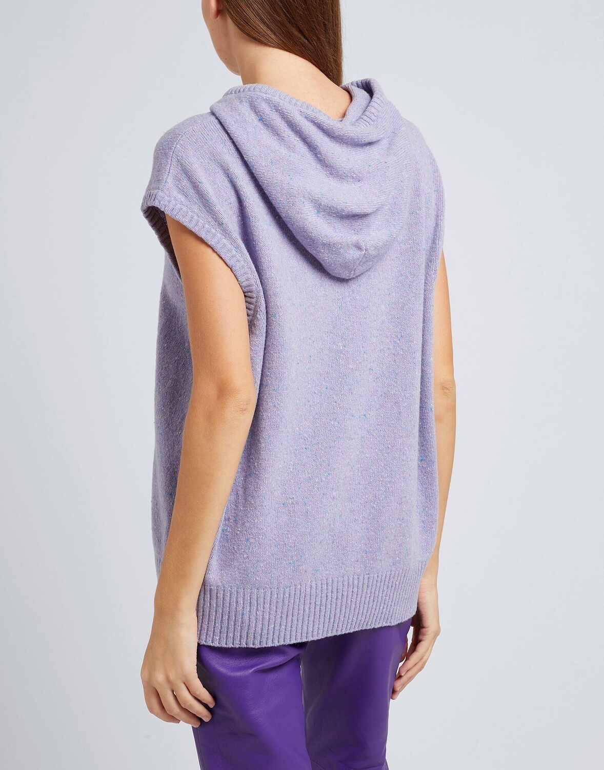Этот свитер без рукавов из переработанной смесовой шерсти имеет текстуру средней плотности, подходящую для средних температур сезона. Изготовлено в Италии, однотонное с эффектом меланжа, дополнено капюшоном и ребристыми краями. На модели итальянский размер S/40. Этот предмет одежды содержит цифровой идентификатор, что означает, что вы можете открыть для себя целый мир эксклюзивного контента о своем изделии; отсканируйте QR-код на этикетке по уходу за товаром.