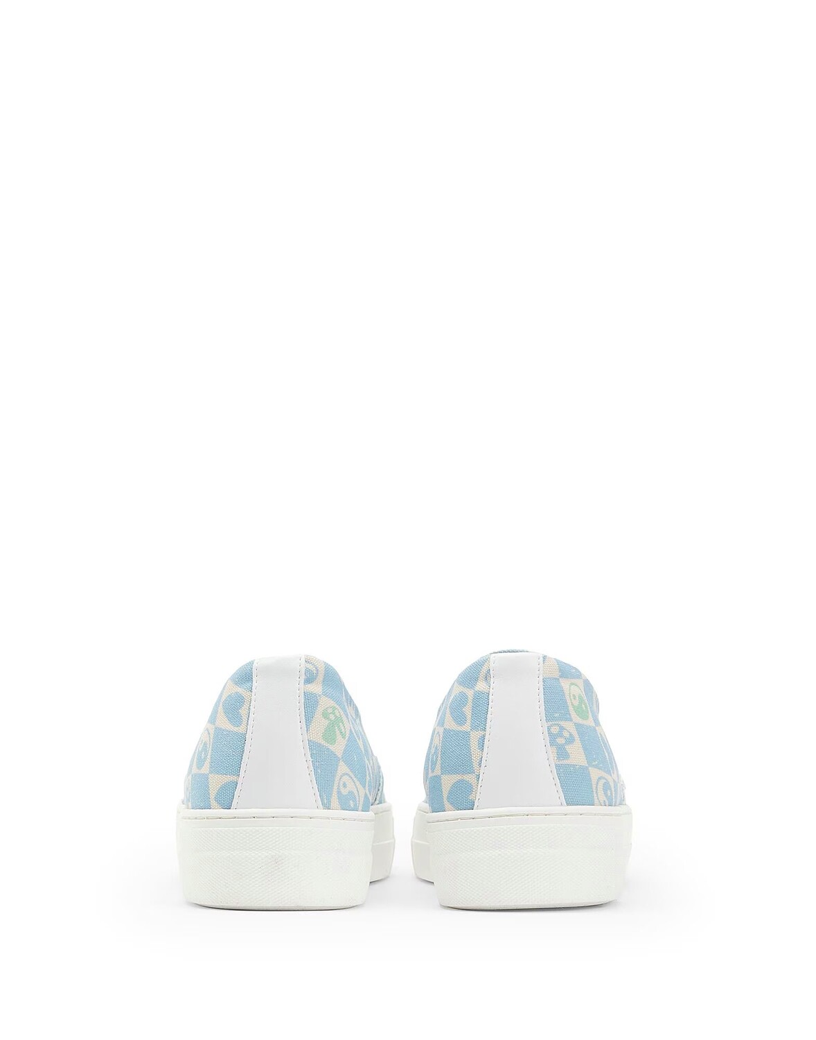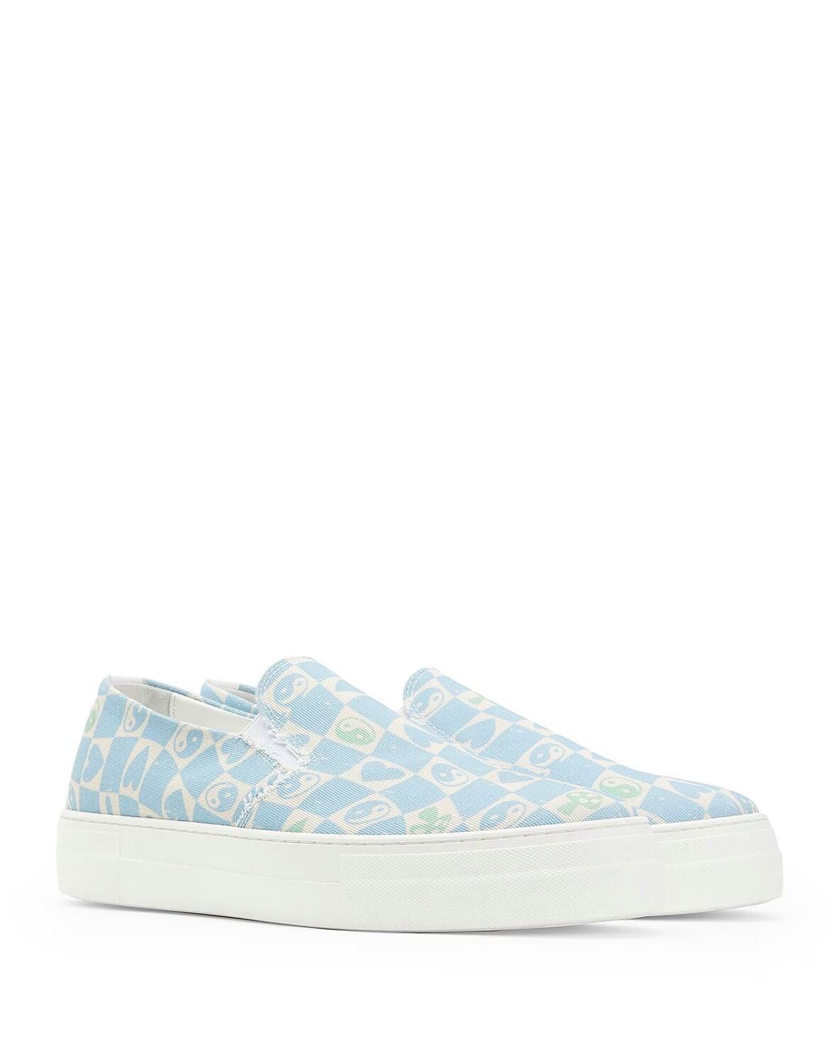В этих кроссовках сочетаются без шнуровки верх из переработанного холста и резиновая подошва. Сделаны в Италии, с закругленным мыском, отличаются эластичными вставками по бокам и ярким узором.
