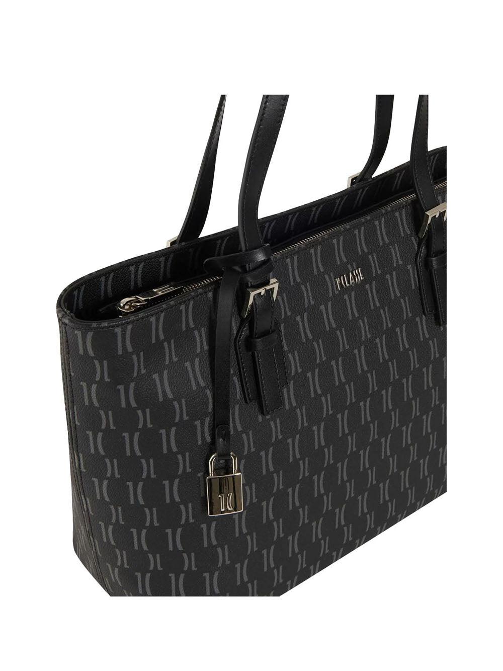 Большая сумка-шоппер с монограммой черного цвета Alviero Martini