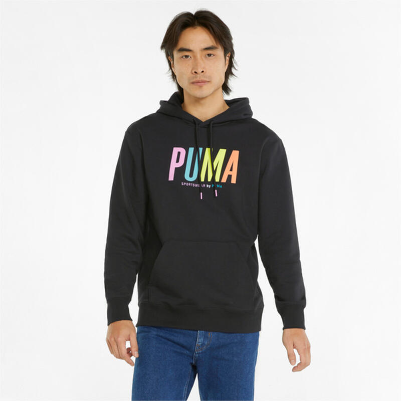 Толстовка с рисунком SWxP украшена ярким логотипом PUMA. Эта толстовка с удобным карманом-кенгуру и регулируемым капюшоном станет идеальной моделью для любителей моды.