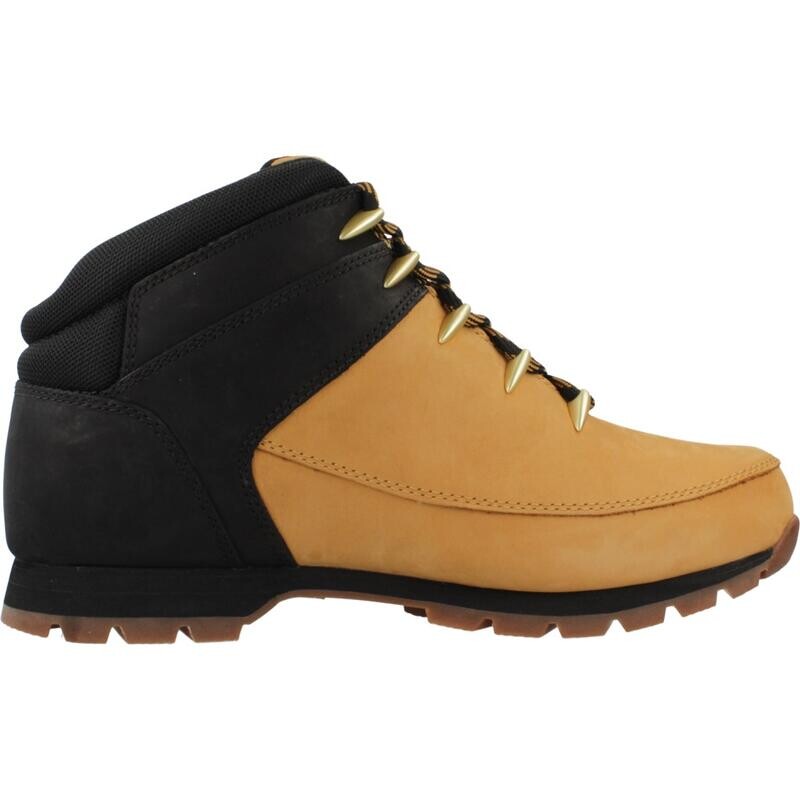 Мужские кроссовки от бренда Timberland, модель Euro Sprint Mid Lace светло-коричневого цвета на текстильной подкладке. Кожаный и текстильный фасад. Тип конструкции: клееный. Сделано в Бангладеш.