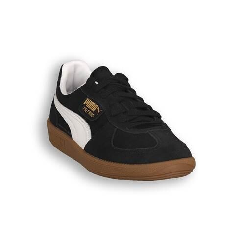 Мужские кроссовки бренда Puma, модель Palermo, черного цвета на синтетической подкладке. отделка из спилка кожи. Тип конструкции: клееный. Сделано во Вьетнаме.