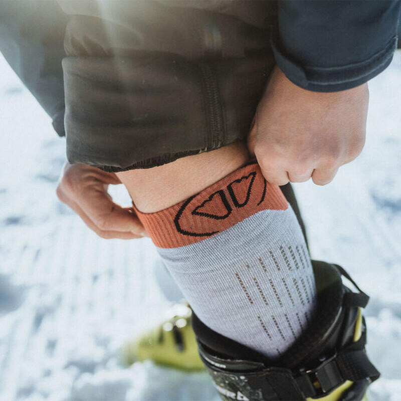 Эти высокоэффективные лыжные носки изготовлены из 200 нитей и имеют неразрезанные волокна вокруг кожи голени и ступней, что обеспечивает больший комфорт и точность при катании на лыжах.