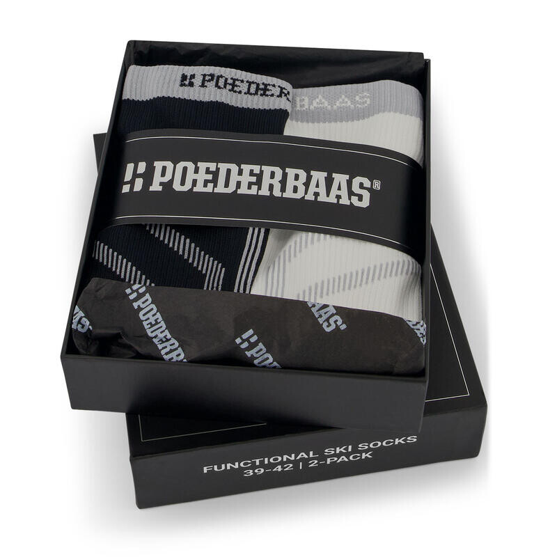 Подарите комфорт и стиль с подарочной коробкой лыжных носков Poederbaas, 2 шт. в черном/белом цвете; Идеально подходит для всех любителей зимних видов спорта!