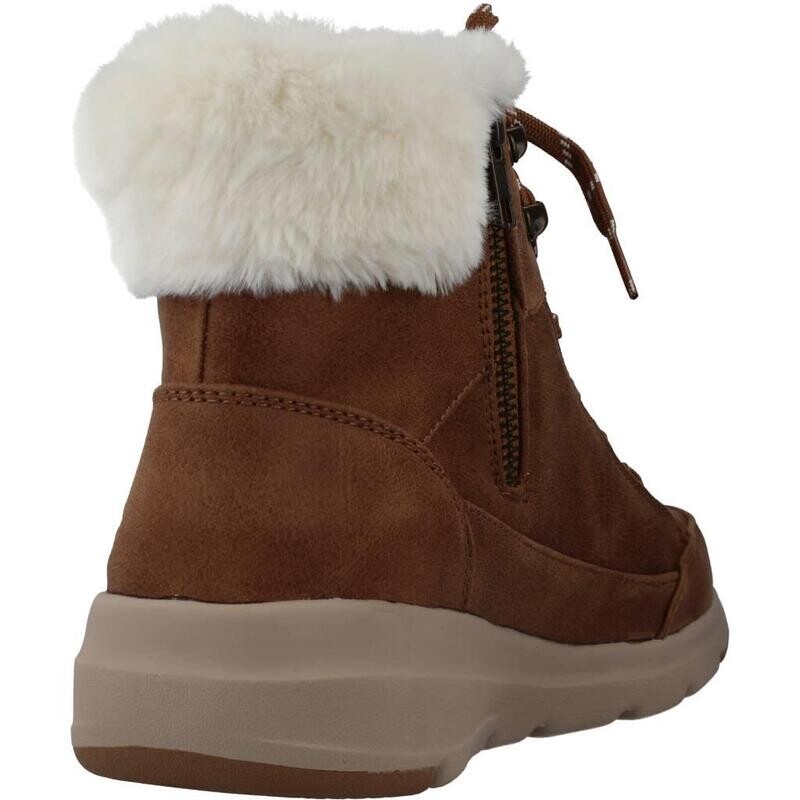 Женские ботильоны от бренда Skechers, модель Glacial Ultra в коричневом цвете на текстильной подкладке. текстильный экстерьер. Тип конструкции: клееный. Сделано во Вьетнаме.