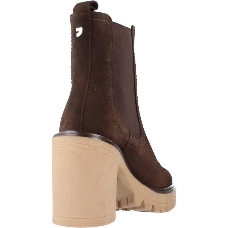 Женские ботильоны от бренда Gioseppo, модель Ardning коричневого цвета на текстильной подкладке. отделка из спилка кожи. Тип конструкции: клееный. 9,5 см. на каблуке. Сделано во Вьетнаме.