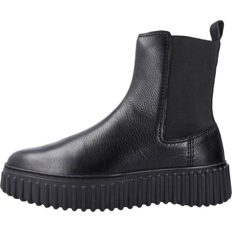 Женские ботильоны от бренда Clarks, модель Torhill Maple черного цвета, на текстильной подкладке. Кожаный и текстильный фасад. Тип конструкции: клееный. Сделано во Вьетнаме.