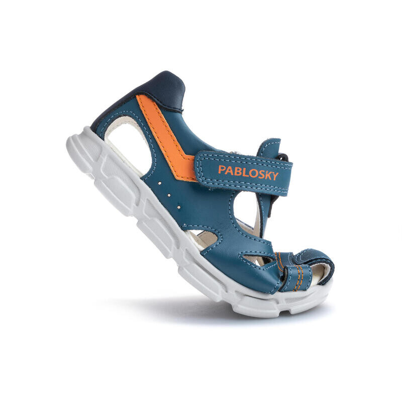 Синие детские кожаные сандалии Pablosky с клейкой застежкой. Лучшая детская обувь, произведенная в Испании.