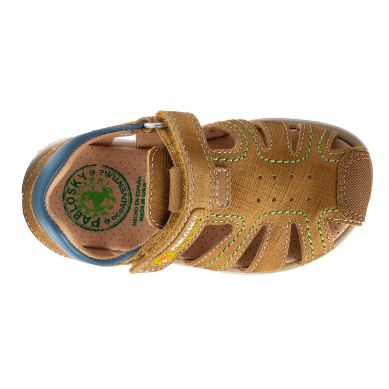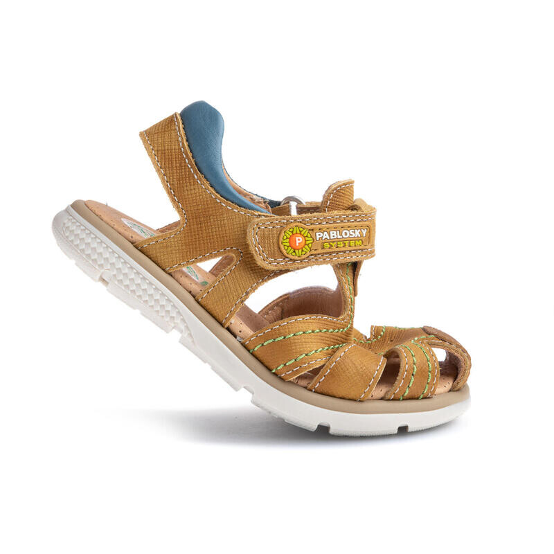 Pablosky Бежевые кожаные детские сандалии с клейкой застежкой. Лучшая детская обувь, сделанная в Испании.