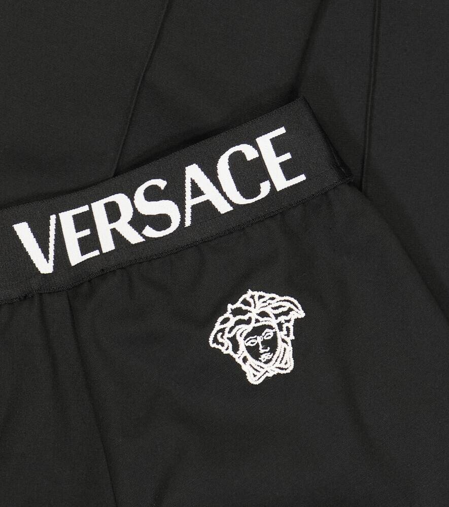 Хлопковые брюки с высокой посадкой и логотипом Versace, черный