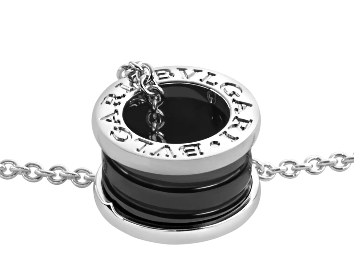 Ожерелье Save the Children с подвеской в виде круга из стерлингового серебра и черной керамики, вдохновленной B.zero1, и цепочкой из стерлингового серебра. Вдохновленное ювелирной коллекцией B.zero1, ожерелье из стерлингового серебра 925 пробы и черной керамики с круглой подвеской отмечает продолжающееся филантропическое партнерство Bvlgari с Save the Children и имеет выгравированный логотип благотворительной организации. Bvlgari пожертвует 95 евро с каждой продажи на поддержку программ Save the Children по всему миру. Подвеска Save the Children из черной керамики и стерлингового серебра с цепочкой из стерлингового серебра. Длина 14,60–17,70 дюймов (38–45 см).