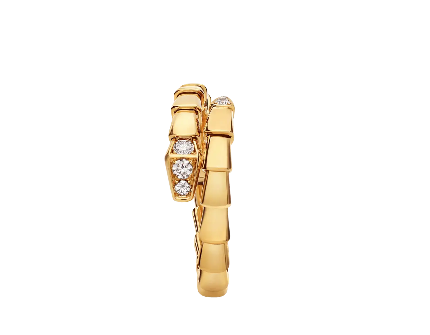 Кольцо Serpenti Viper из 18-каратного желтого золота с одним витком и бриллиантовым паве на голове и хвосте. Кольцо Serpenti Viper из 18-каратного желтого золота с бриллиантами demi pavé, с его фирменным сочетанием чистой эстетики, обволакивающих форм и харизматичного стиля, является неотъемлемой интерпретацией символа бесконечных метаморфоз Bvlgari. Отражая мощную и постоянно меняющуюся природу мифического змея, это магнетическое ювелирное творение вдохновляет нас принимать перемены как источник силы и уверенности в себе. Легкое в комбинировании, кольцо предлагает бесконечные возможности для стилизации, воплощая универсальный дух коллекции.