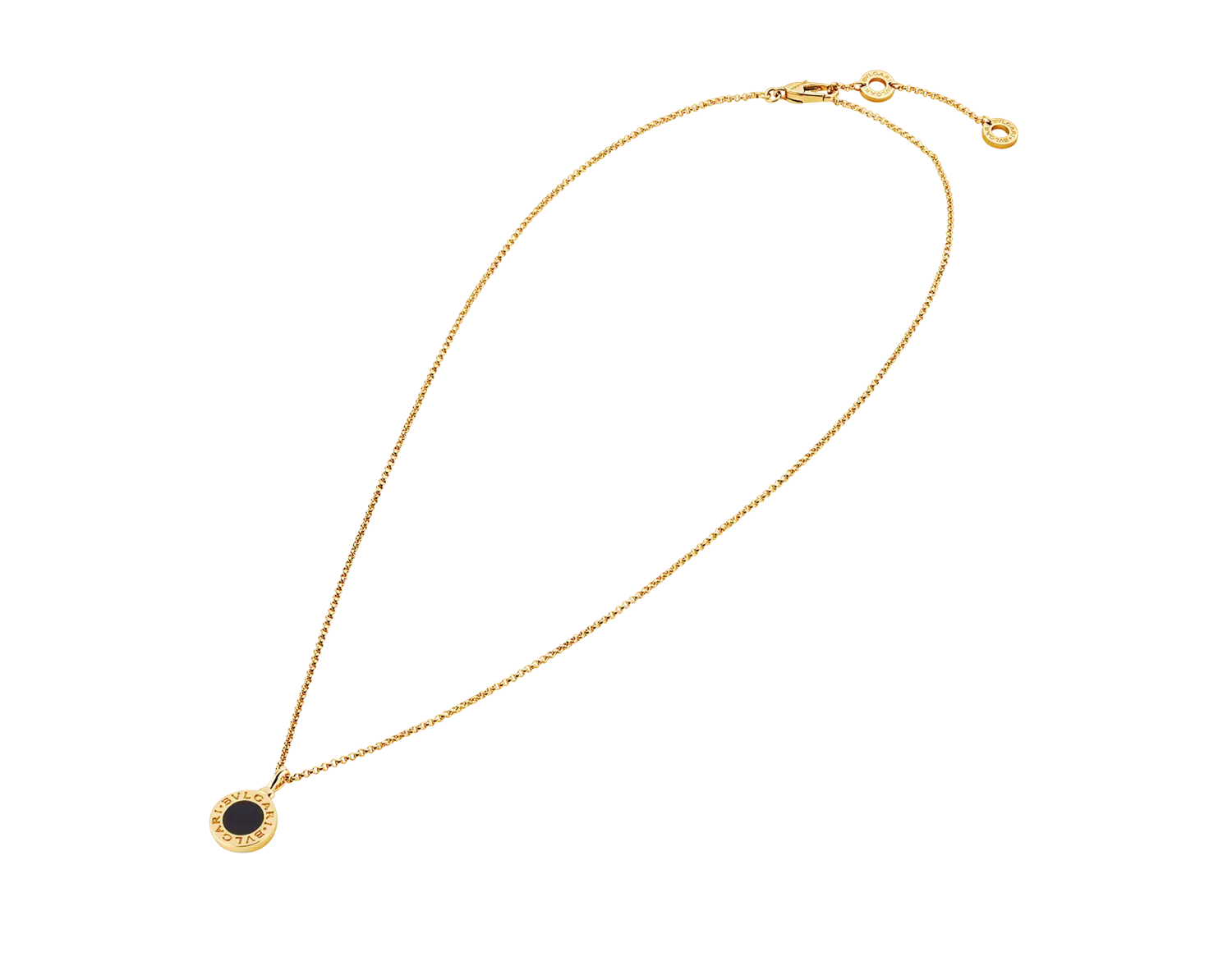 Колье Bvlgari Bvlgari с цепочкой из 18-каратного желтого золота и подвеской из 18-каратного желтого золота с ониксом. Выросшее из римских корней бренда в элегантное слияние культуры и современности, ожерелье Bvlgari Bvlgari является искрометным, современным заявлением о классике. Фирменный двойной логотип изначально был вдохновлен изогнутыми надписями на древних монетах, а сегодня он превратился в игривые и неожиданные интерпретации, создавая отличительный элемент дизайна. Ожерелье с подвеской Bvlgari Bvlgari из желтого золота 18 карат с ониксом. Длина 16-17 дюймов (41-43 см).