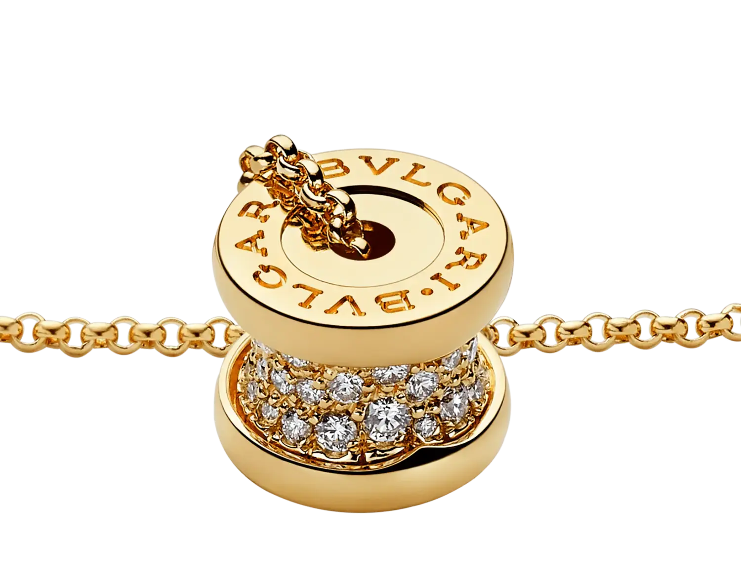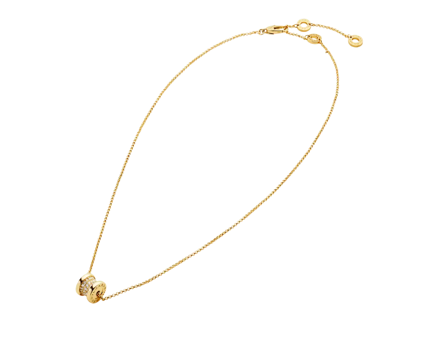 B.zero1 Колье из желтого золота 18 карат с бриллиантовым паве по спирали. Черпая вдохновение в самом известном амфитеатре в мире, Колизее, B.zero1 является новаторским заявлением творческого видения Bvlgari и настоящей иконой итальянского дизайна. Бросая вызов самой сути эстетики ювелирных изделий, его отличительная спираль является метафорой гармонии прошлого, настоящего и будущего, отраженной в великолепии Вечного города, и эмблемой новаторского духа коллекции. Колье B.zero1 из 18-каратного желтого золота с бриллиантовым паве. Длина 14,60–17,70 дюймов (38–45 см).