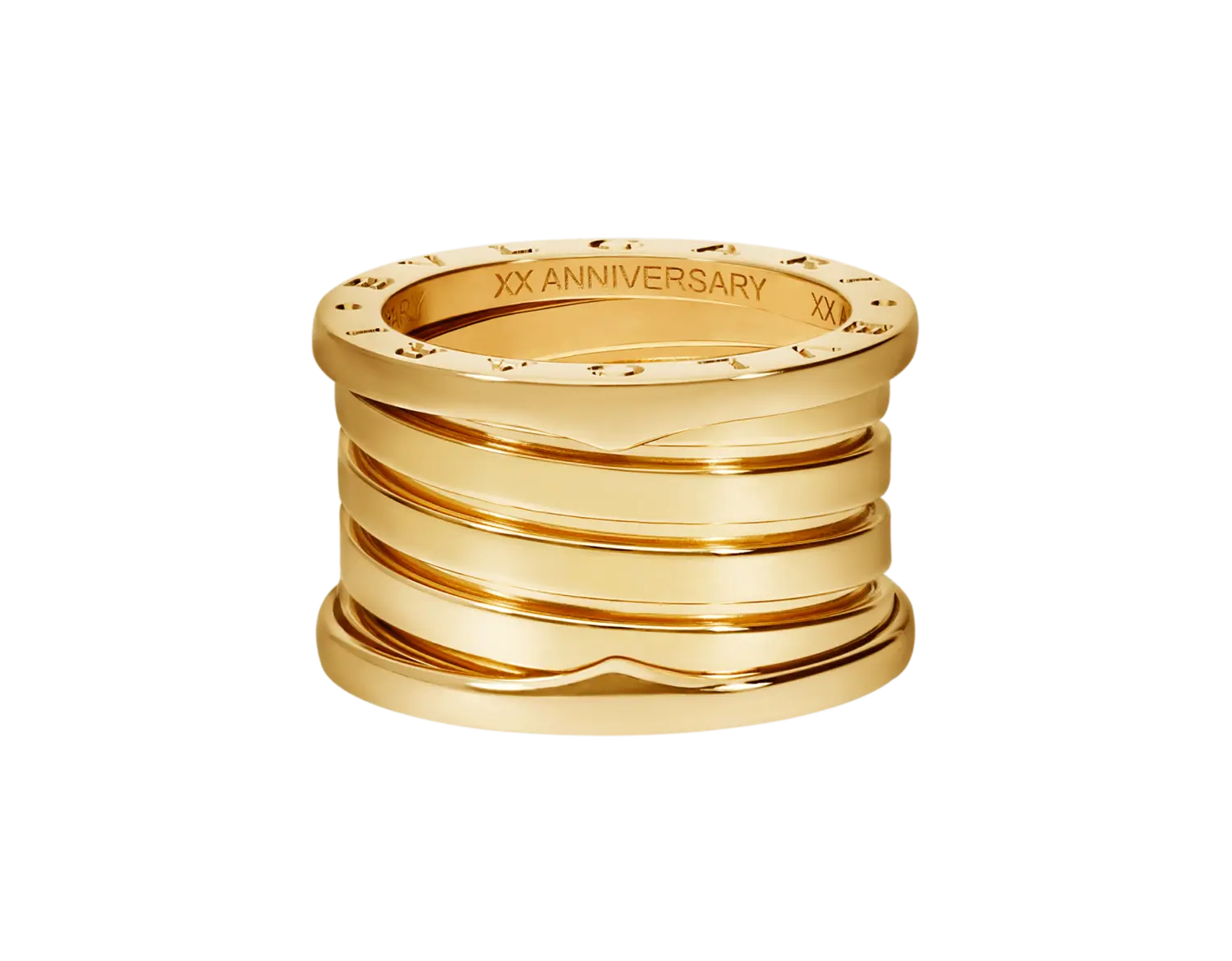 Кольцо B.zero1 XXth Anniversary с пятью полосами из 18-каратного желтого золота.
