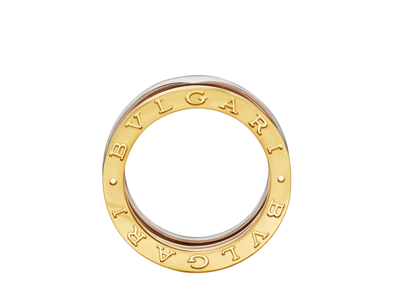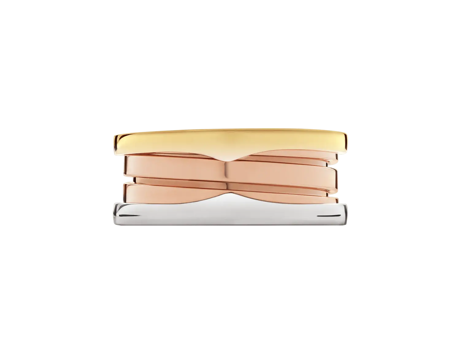 Трехполосное кольцо B.zero1 из 18-каратного розового, белого и желтого золота.