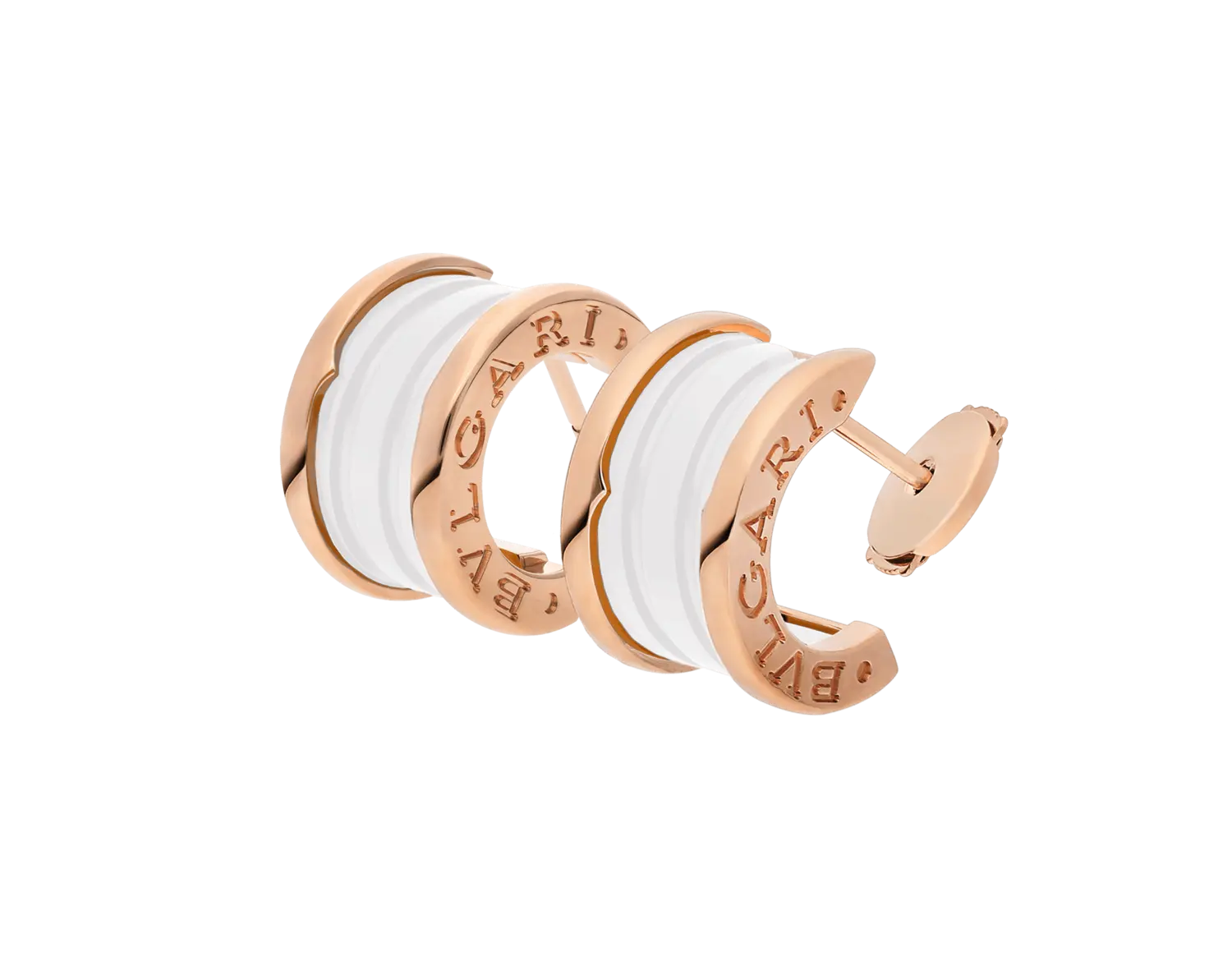 Серьги B.zero1 из 18-каратного розового золота и белой керамики. Черпая вдохновение в самом известном амфитеатре мира, Колизее, серьги B.zero1 являются истинным выражением творческого видения Bvlgari, бросающим вызов самой сути ювелирного дизайна. Чистота их отличительной спирали является метафорой гармонии прошлого, настоящего и будущего, отраженной в великолепии вечного города, и эмблемой новаторского духа коллекции.