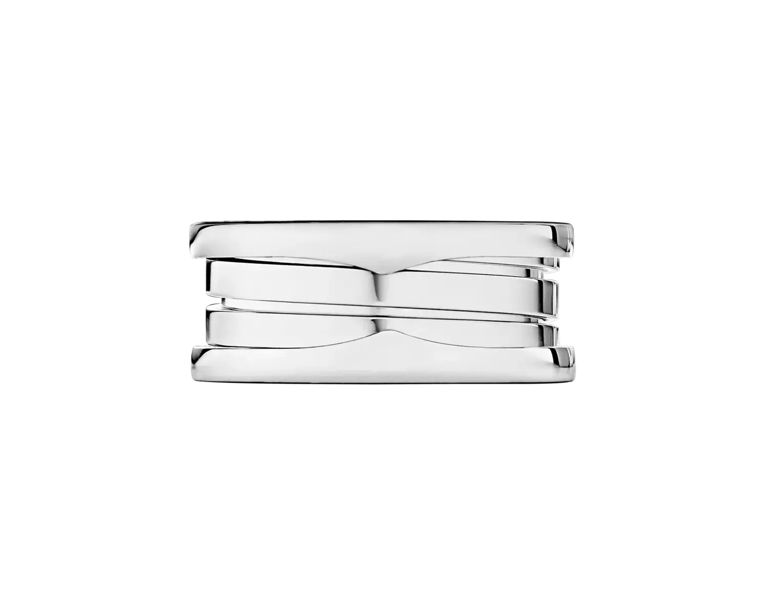 Трехполосное кольцо B.zero1 из 18-каратного белого золота. Черпая вдохновение в самом известном амфитеатре мира, Колизее, кольцо B.zero1 является истинным выражением творческого видения Bvlgari, бросающим вызов самой сути ювелирного дизайна. Чистота его отличительной спирали является метафорой гармонии прошлого, настоящего и будущего, отраженной в великолепии вечного города, и символом новаторского духа коллекции. Трехполосное кольцо B.zero1 из 18-каратного белого золота.
