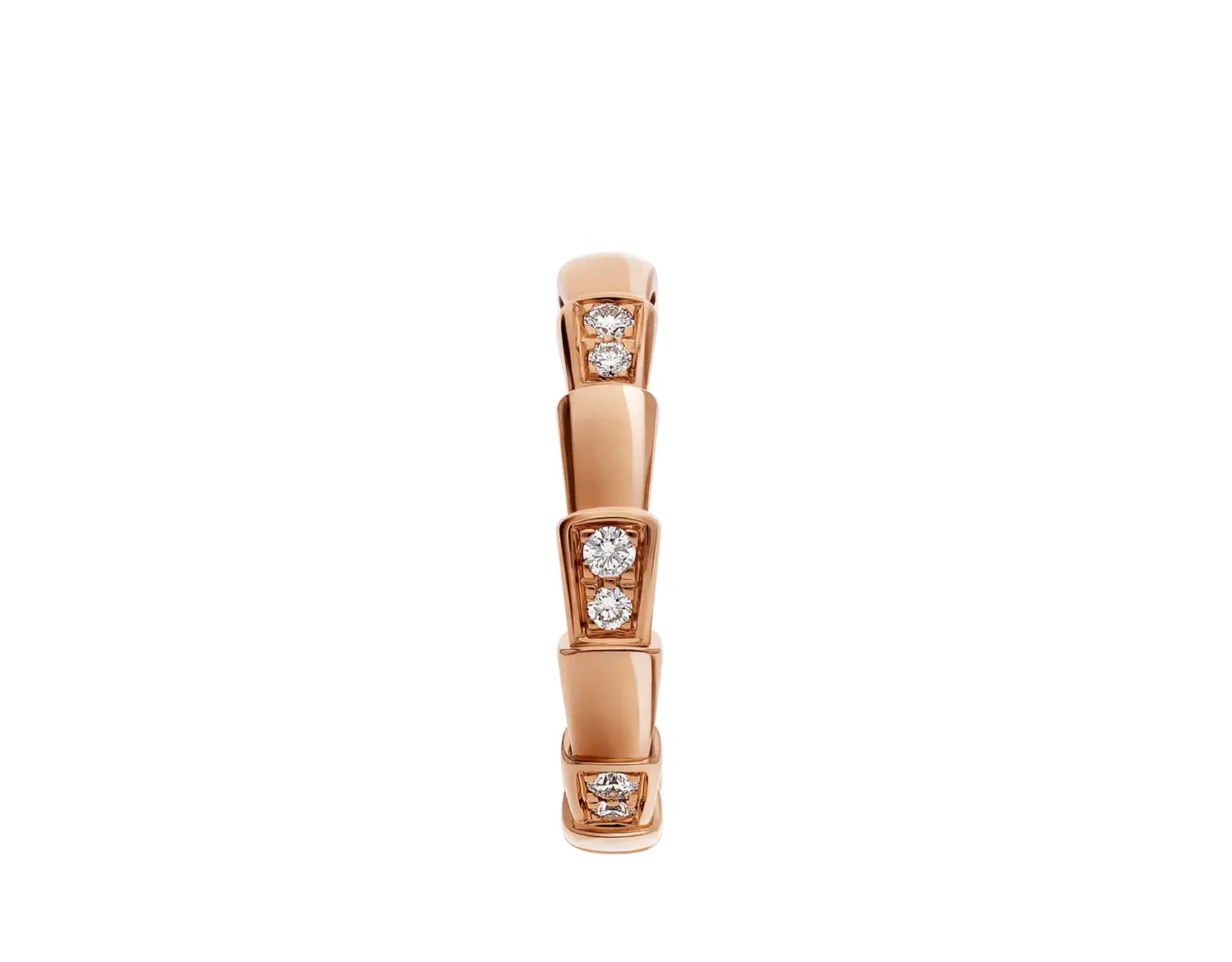 Тонкое кольцо Serpenti Viper из 18-каратного розового золота с бриллиантами в технике деми-паве. Кольцо Serpenti Viper из розового золота 18 карат с бриллиантами demi pavé, сочетающее в себе фирменную эстетику, обволакивающие формы и харизматичный стиль, является неотъемлемой интерпретацией символа бесконечных метаморфоз Bvlgari. Отражая мощную и постоянно меняющуюся природу мифического змея, это магнетическое ювелирное творение вдохновляет нас принимать перемены как источник силы и уверенности в себе. Легкое в комбинировании, кольцо предлагает бесконечные возможности для стилизации, воплощая универсальный дух коллекции.