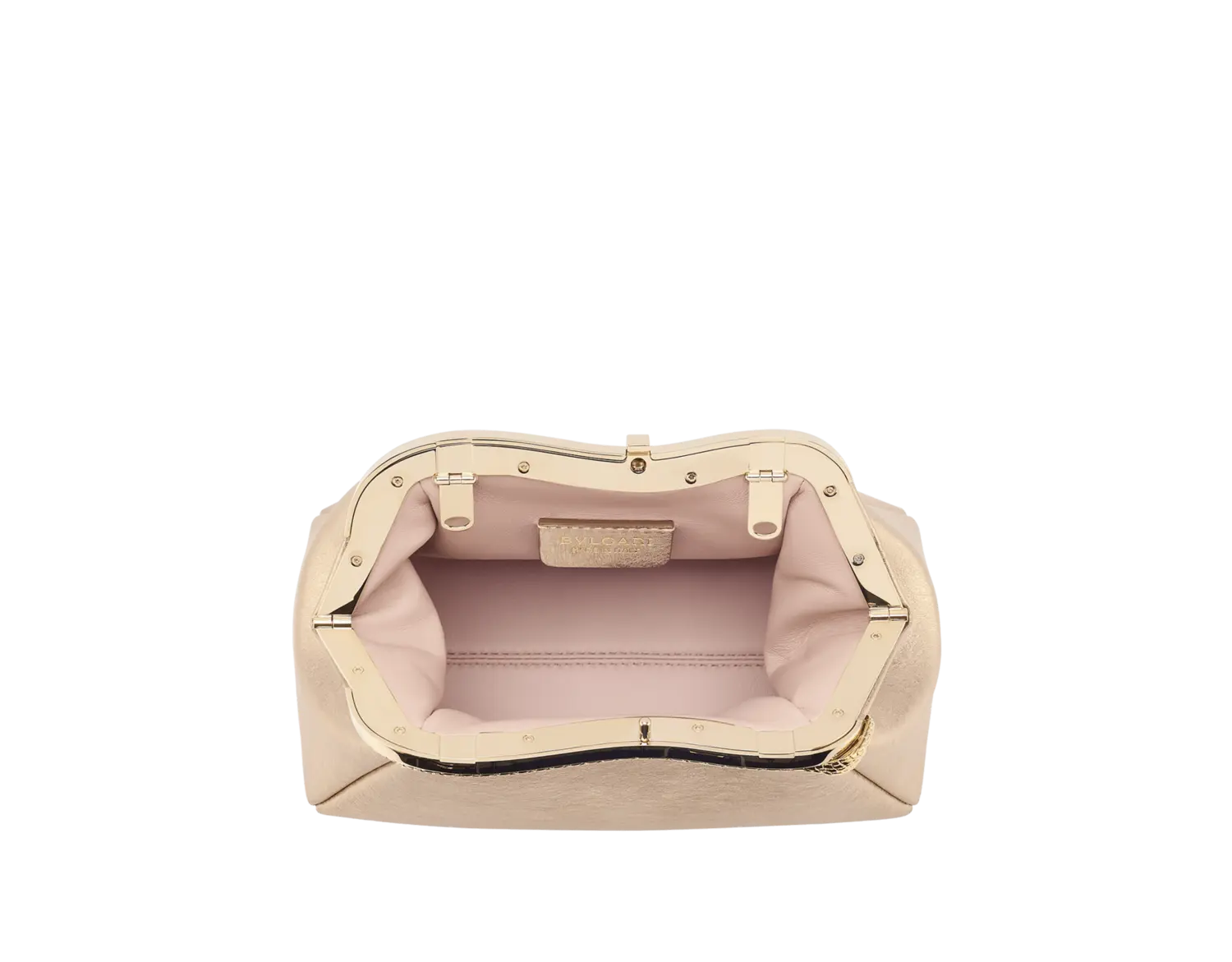 Сумка Serpentine, выполненная из светло-золотой телячьей кожи с полосками, может похвастаться металлическим и полосатым эффектом, напоминающим прекрасные включения необработанных алмазов. Смелая переосмысленная версия вневременной иконы, сумка сочетает в себе модную форму с ювелирными деталями, вызывающими в памяти извилистые движения змеи. Сумка с каркасом в форме тела змеи, вдохновленная смелыми ожерельями Serpenti 1960-х годов, предлагает несколько стилей в одном, так как ее изогнутый металлический верх украшен гравированными чешуйками и красными эмалевыми глазами спереди для гламурного образа, а вставка из телячьей кожи сзади для более повседневного ощущения. Эта модель дополнена одним отделением, застежкой на кнопку и кожаным ремешком. 19,5 x 14 x 10 см - 7,7 x 5,5 x 3,9 дюйма. Сделано в Италии.