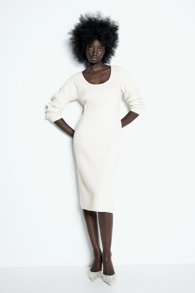 Платье в рубчик с овальным вырезом H&M, белый 3 648₽