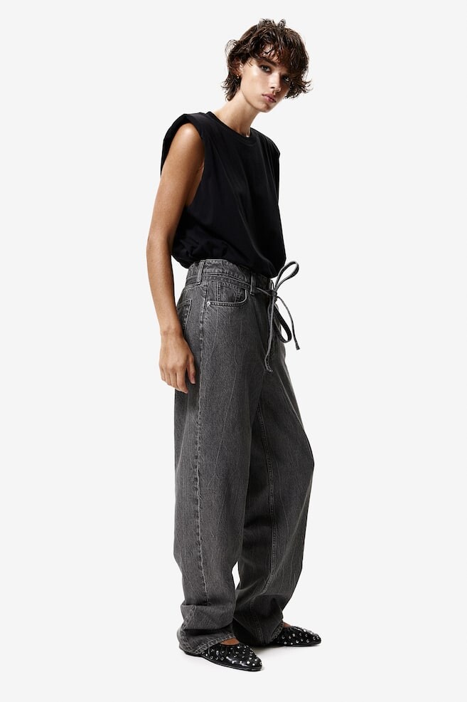 Джинсы с 5 карманами из прочного денима, который поначалу кажется немного жестким, но при частом ношении становится мягче и свободнее. Прямые брючины с очень свободной посадкой от талии до бедер и очень свободной посадкой от бедра до низа ног. Низкий пояс с молнией, пуговицей и узким съемным поясом. Увеличенная длина штанин для желаемого эффекта стопы. Настоящий образ 90-х. Рост модели: рост модели 176 см/5 футов 9 дюймов, размер 36. Длина: очень длинные штанины Высота талии: заниженная талия Посадка: свободная. Посадка Стиль: мешковатый, прямые брюки Концепция: ДЕНИМ