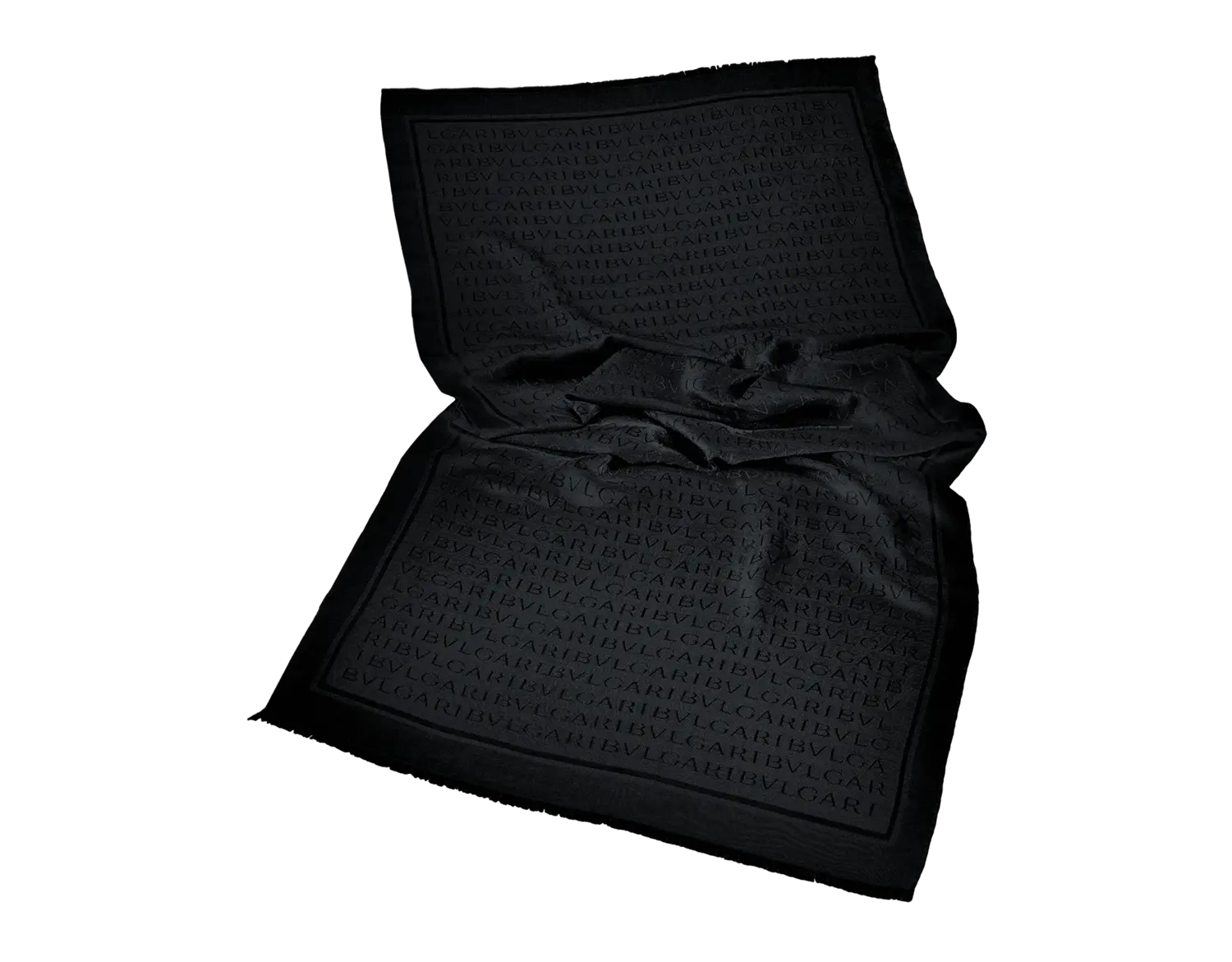 Палантин Lettere Maxi из тонкой черной шелковой шерсти. Изготовленный из тонкой черной шелковой шерсти, палантин Lettere Maxi представляет собой вневременную интерпретацию культового логотипа Bvlgari. С преобладанием блеска шелка с одной стороны и тепла шерсти с другой, этот изысканный аксессуар характеризуется пленительным блестяще-матовым эффектом, идеально подходящим для любого случая. Предлагая множество вариантов укладки, эту модель можно завязывать на шее разными способами или носить через плечо для более элегантного вида. 70 x 180 см - 27,6 x 70,8 дюймов. Ручная работа в Италии.