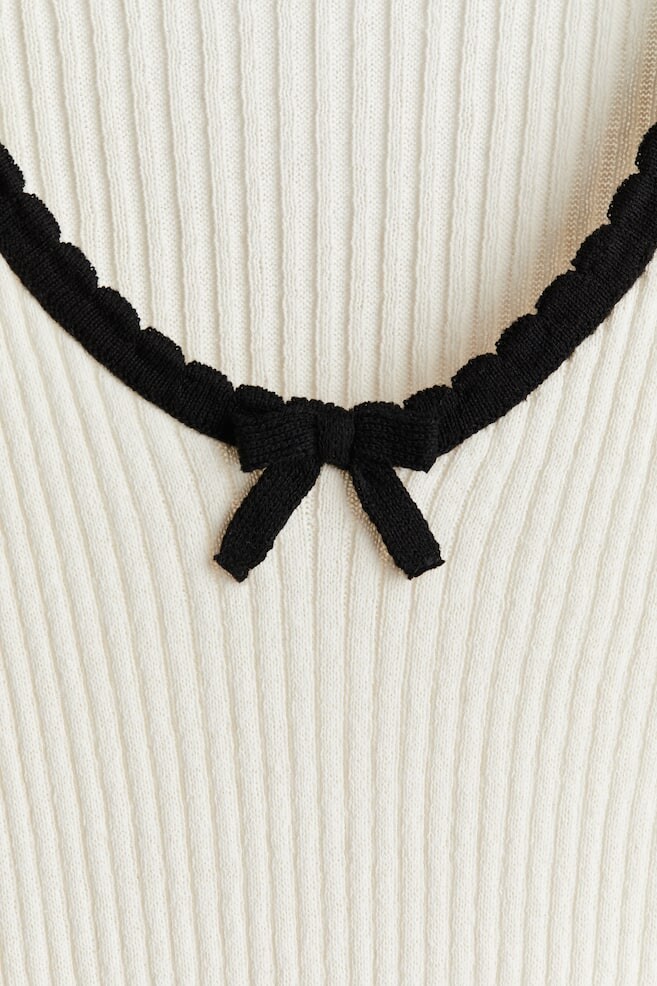 Короткое облегающее фигуру платье из тонкого ребристого трикотажа с глубоким круглым вырезом и длинными рукавами. Контрастная отделка с фестончатыми краями на вырезе и манжетах и небольшим декоративным бантом спереди. Размер: Спинка: Длина: 88,0 см (размер M), Рукав: Длина: 63,0 см (размер M), Плечо: Ширина: 34,0 см (размер M) Длина: Короткая Длина рукава: Длинный рукав Посадка: Приталенная Стиль: Облегающий Вырез: Глубокий вырез, Круглая шея Концепция: РАЗДЕЛЕННАЯ